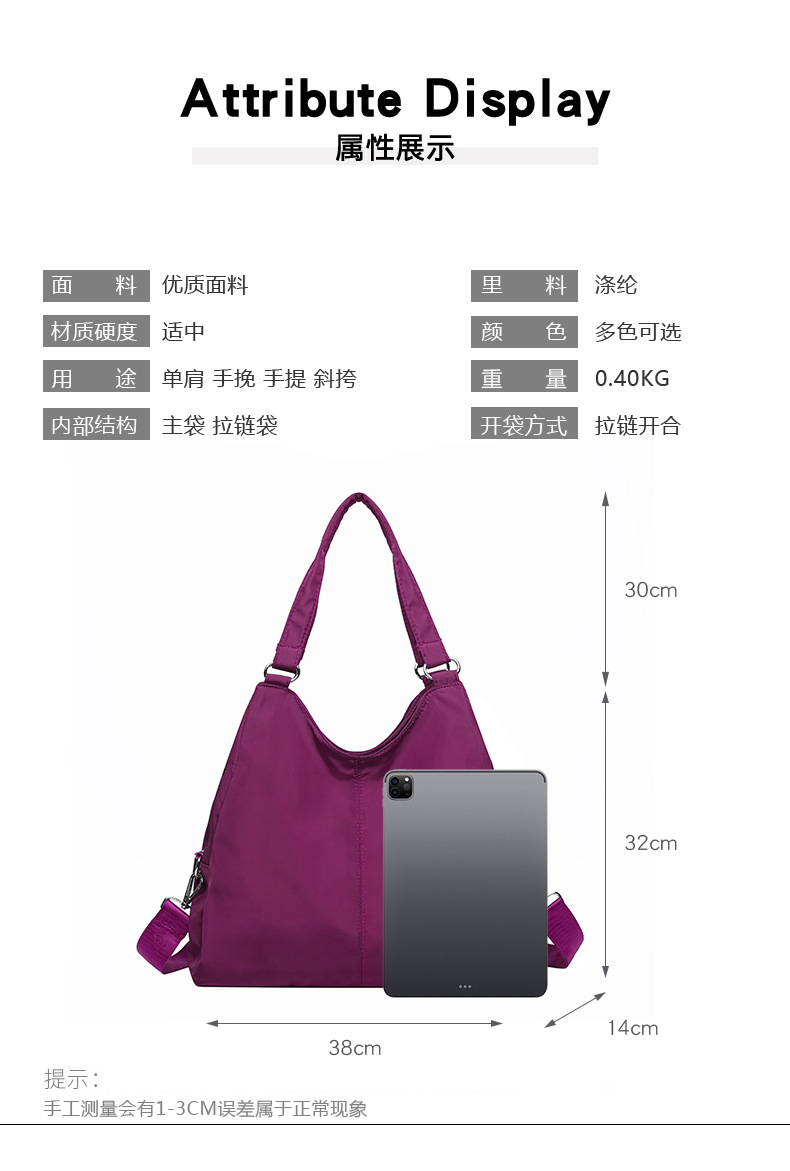 여성을위한 대형 가방 2024 새로운 캔버스 숄더 백 경량 대용량 옥스포드 천 크로스 바디 백 어머니 겨드랑이 가방스토어 가기