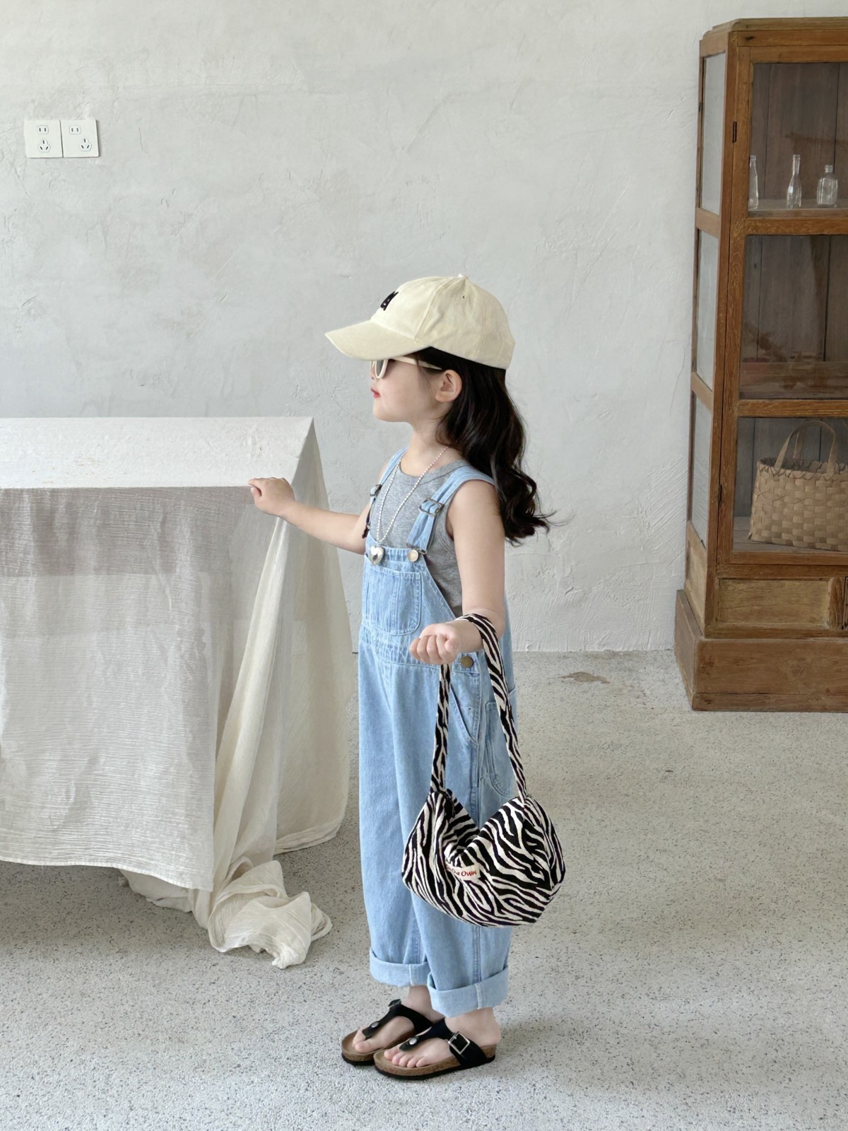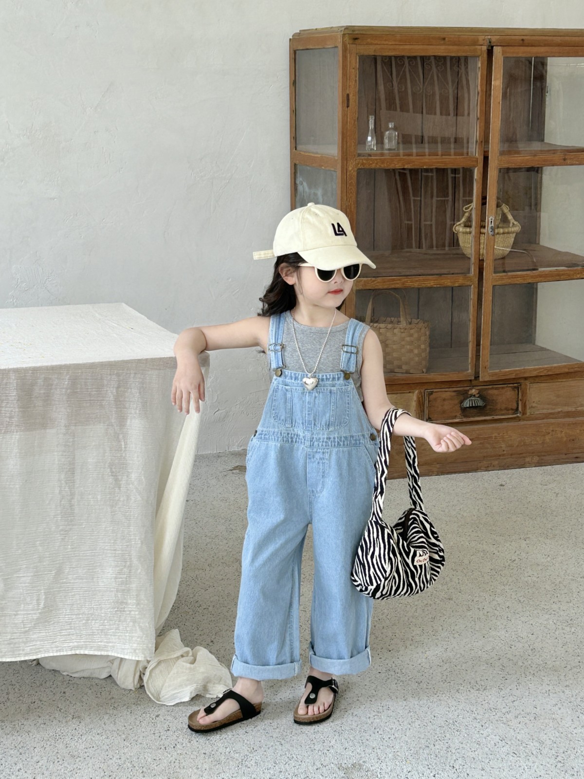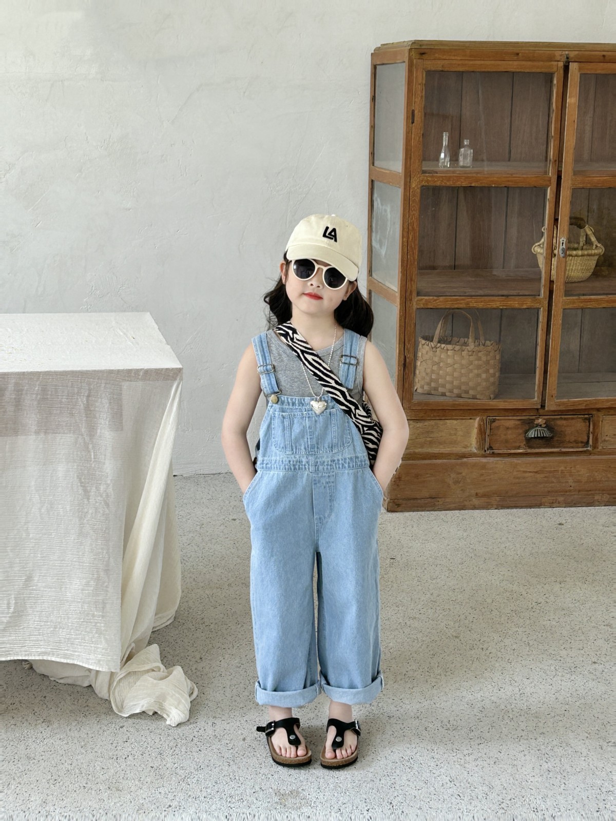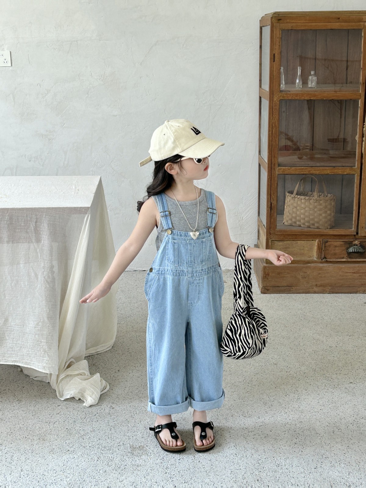 소녀 한국식 데님 벨트 바지 어린이 바지 2025 새로운 패션 한국식 봄과 여름 소년 소녀를위한 트렌디 바지스토어 가기