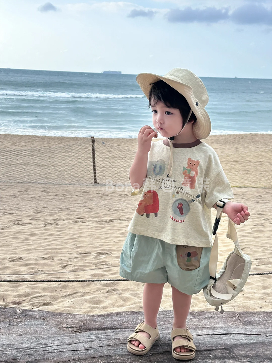 소년 티셔츠 반팔 어린이 여름 옷 2025 새로운 만화 잘 생긴 스타일 바닥 셔츠 아기 소녀 패션 탑 트렌디 3스토어 가기
