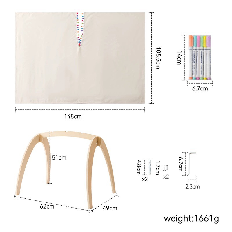 尺寸:健身架:62*49*51cm 帐篷:148*105.5cm 画笔“6.7*14cm