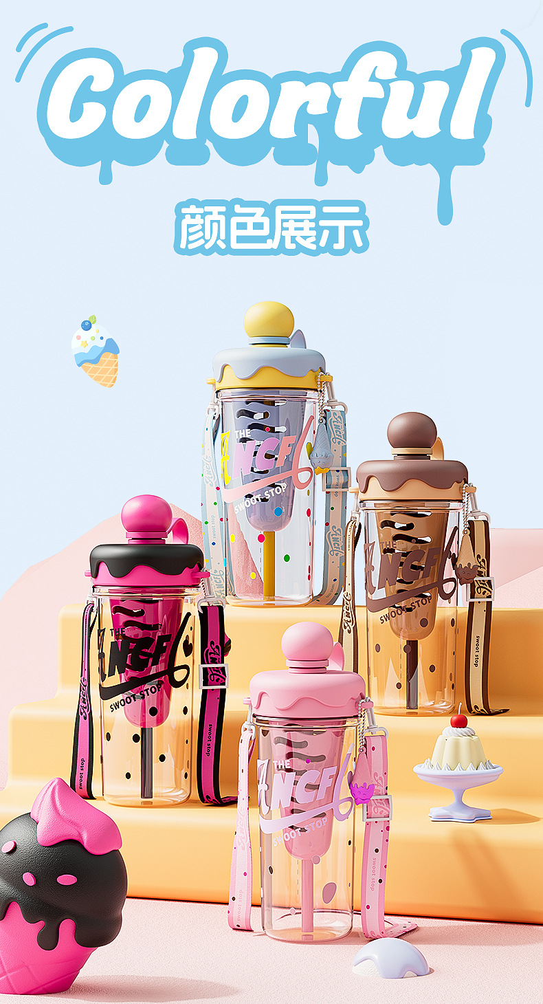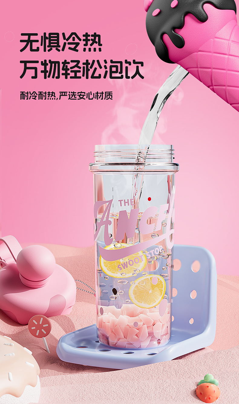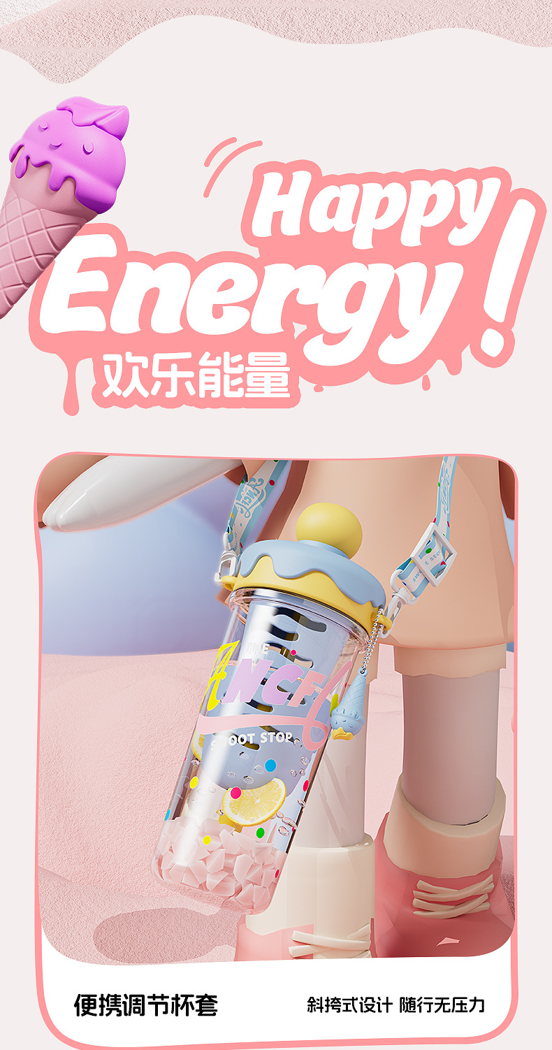 새로운 플라스틱 컵 소녀 높은 가치의 빨대 컵 크로스 바디 휴대용 스포츠 물병 아이스크림 필터 티 컵