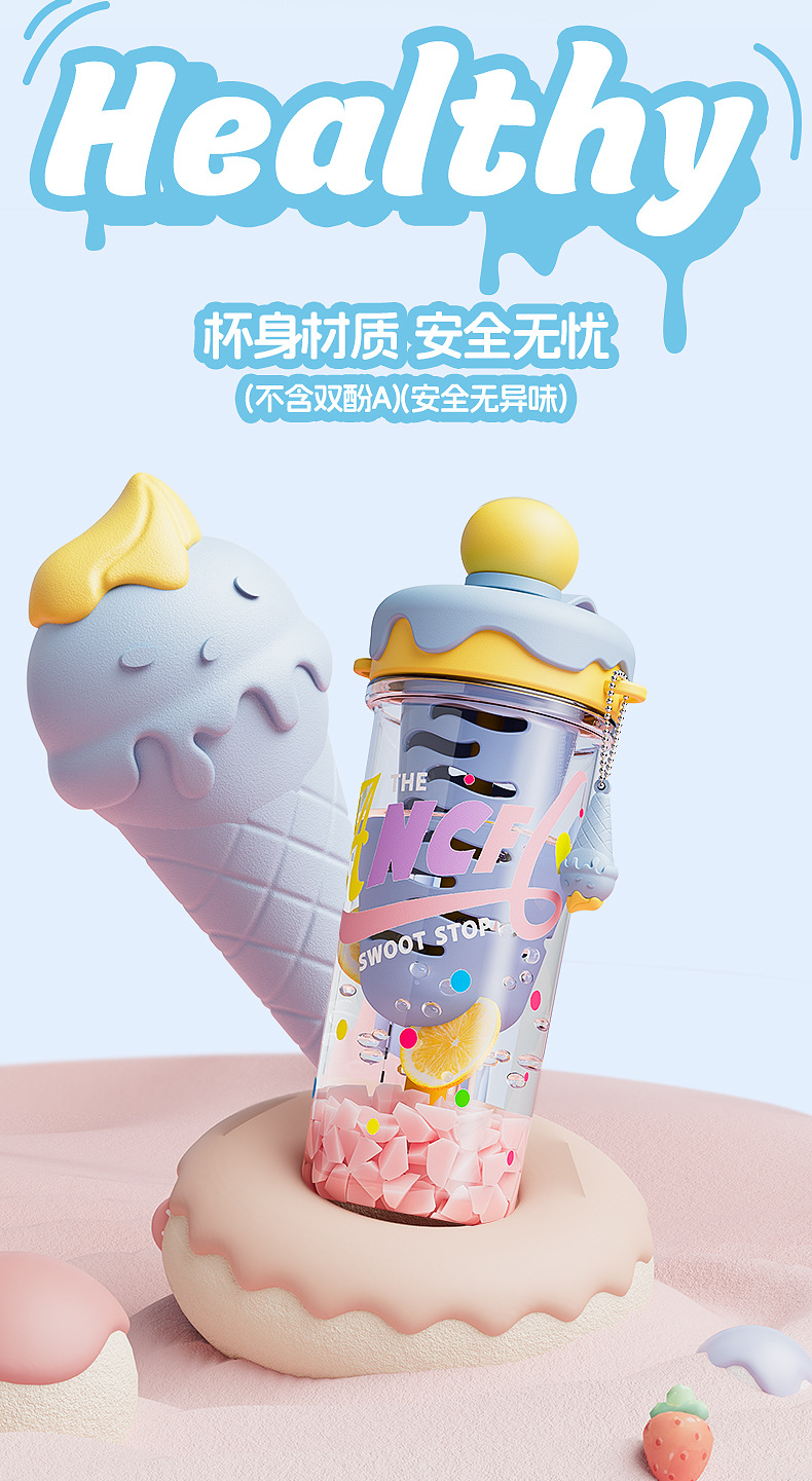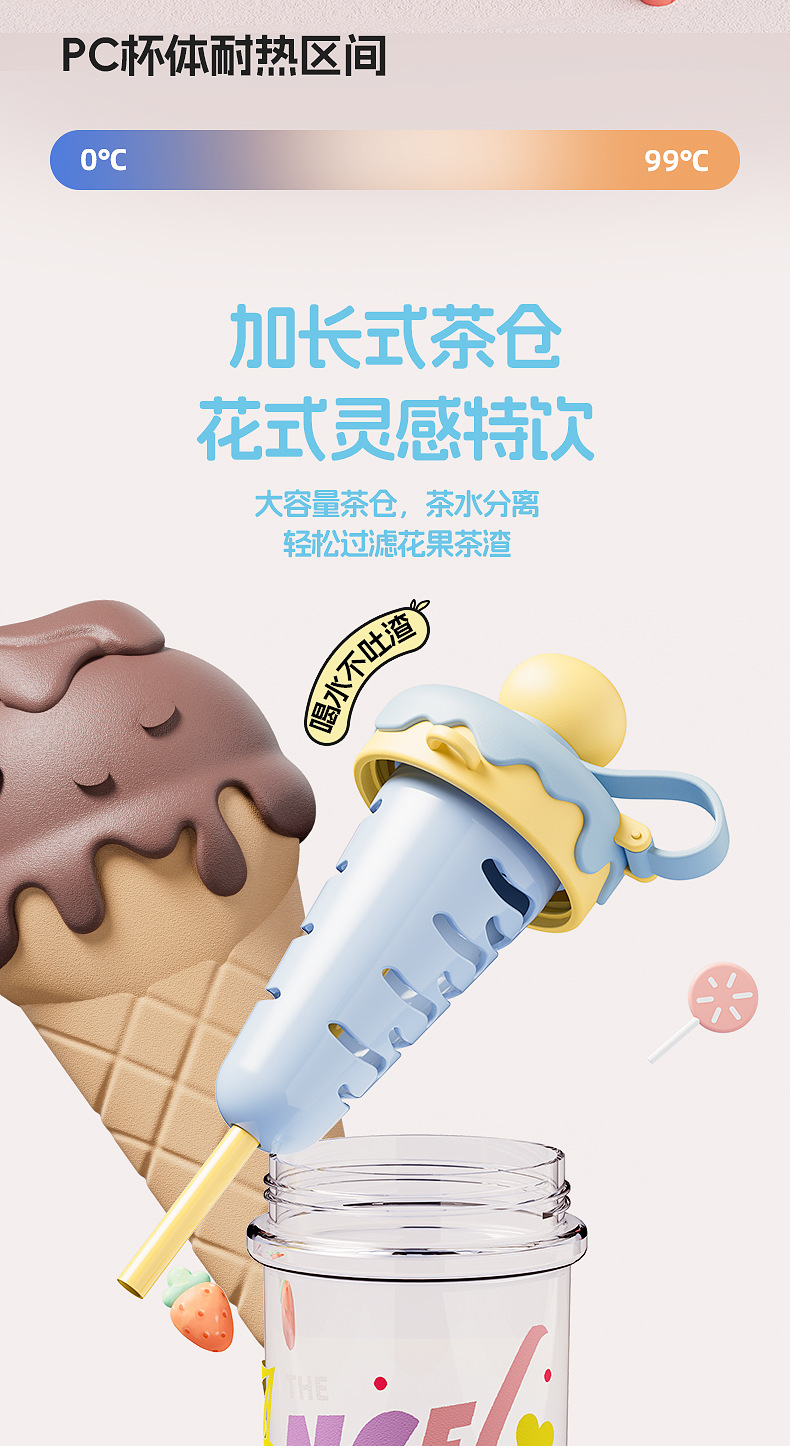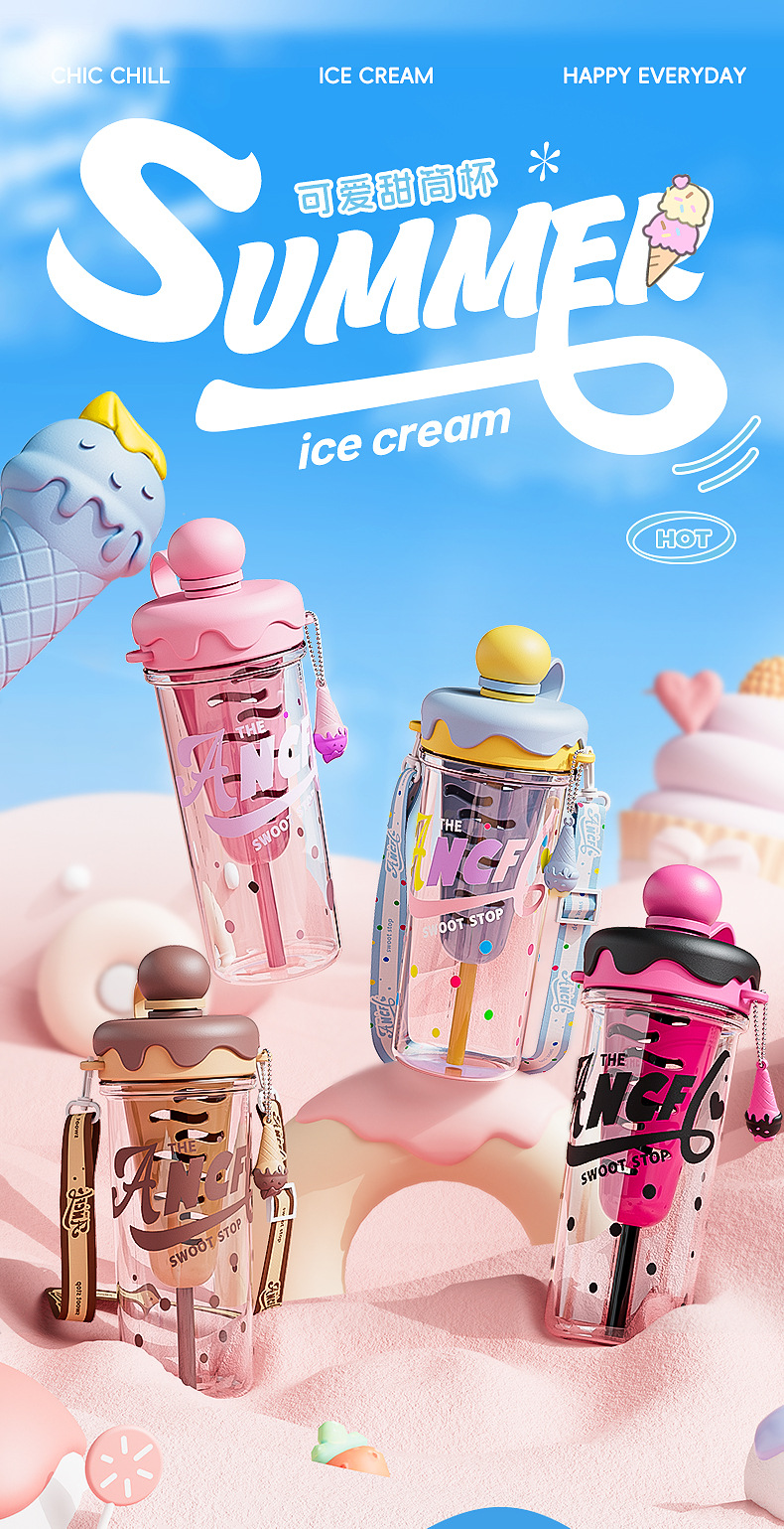 새로운 플라스틱 컵 소녀 높은 가치의 빨대 컵 크로스 바디 휴대용 스포츠 물병 아이스크림 필터 티 컵
