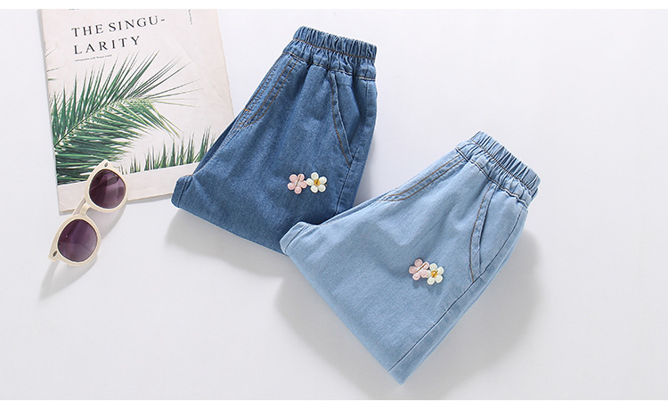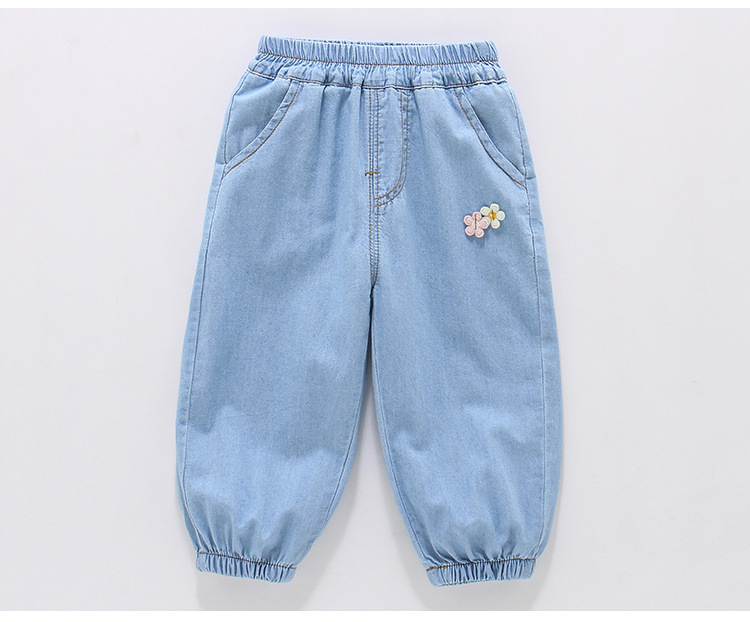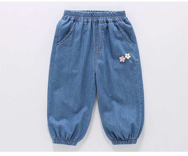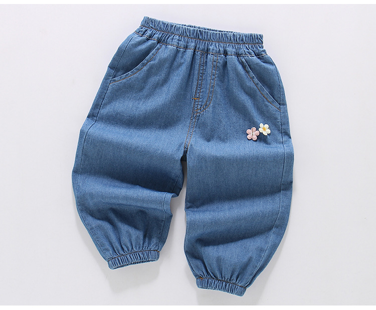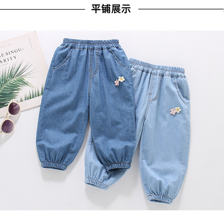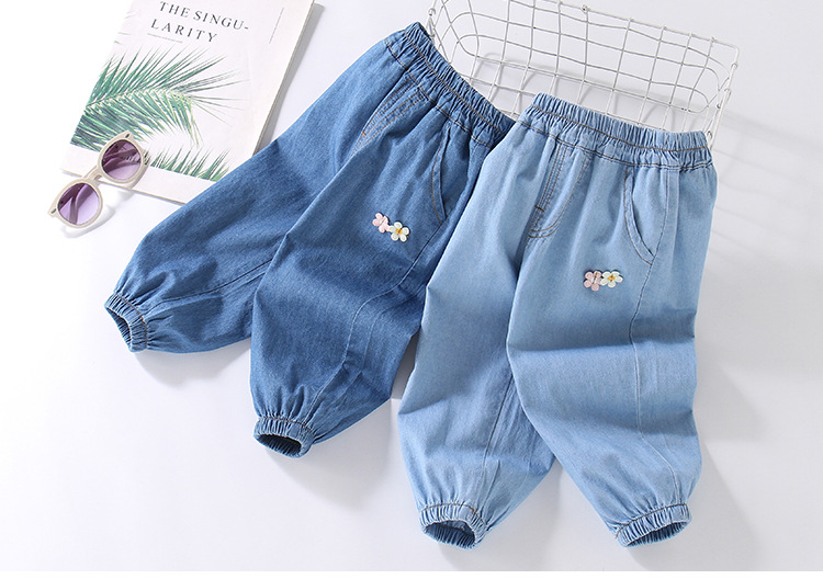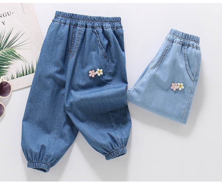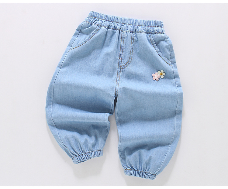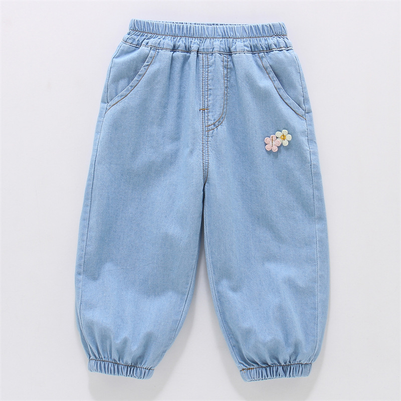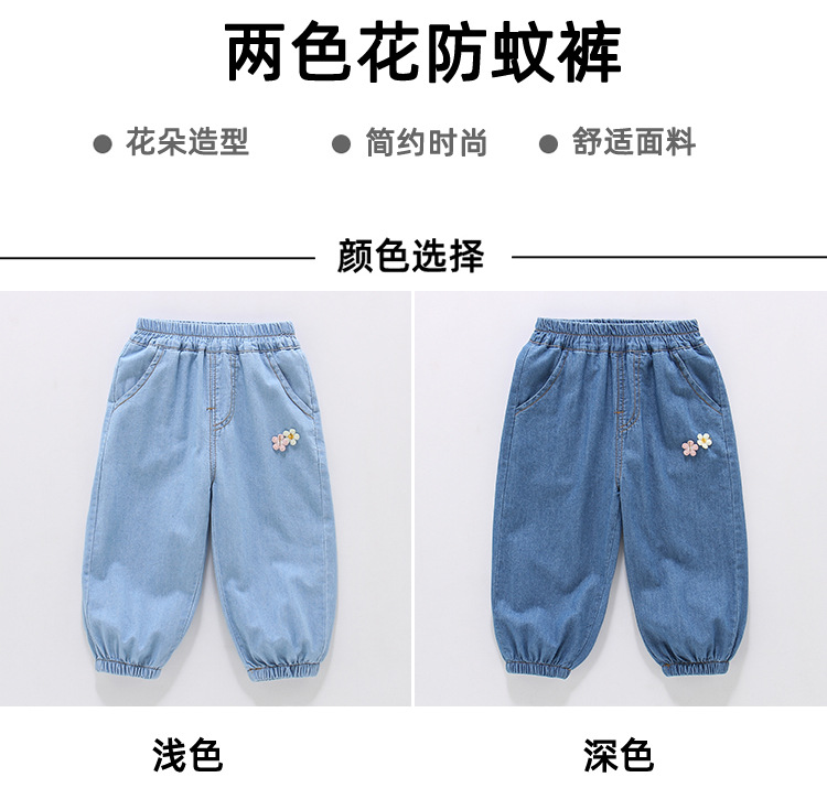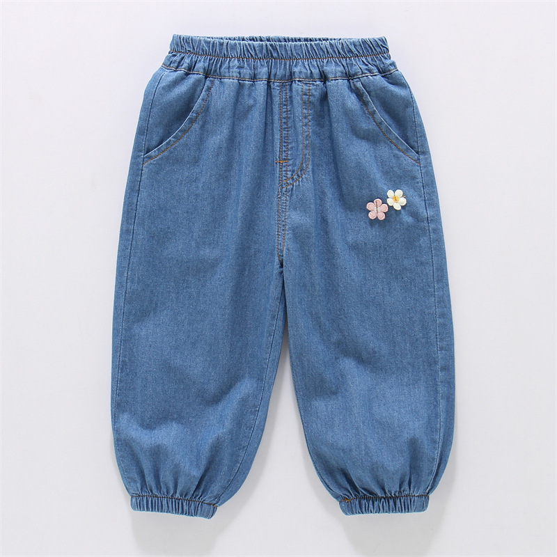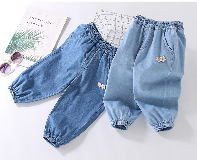 여아용 데님 모기 방지 바지 100% 면 청바지 여름 얇은 중소형 어린이용 루즈하고 부드러운 레깅스 바지스토어 가기