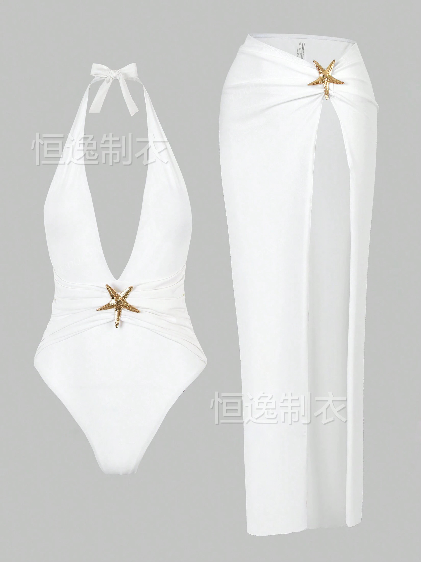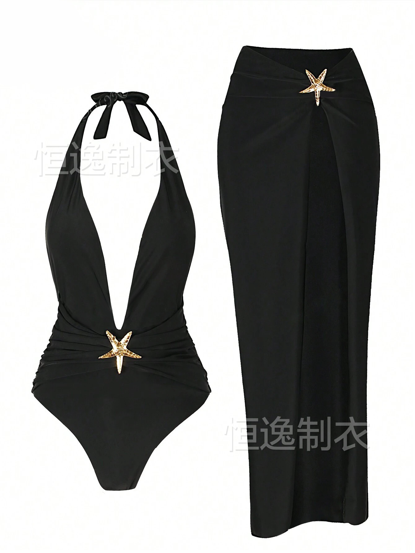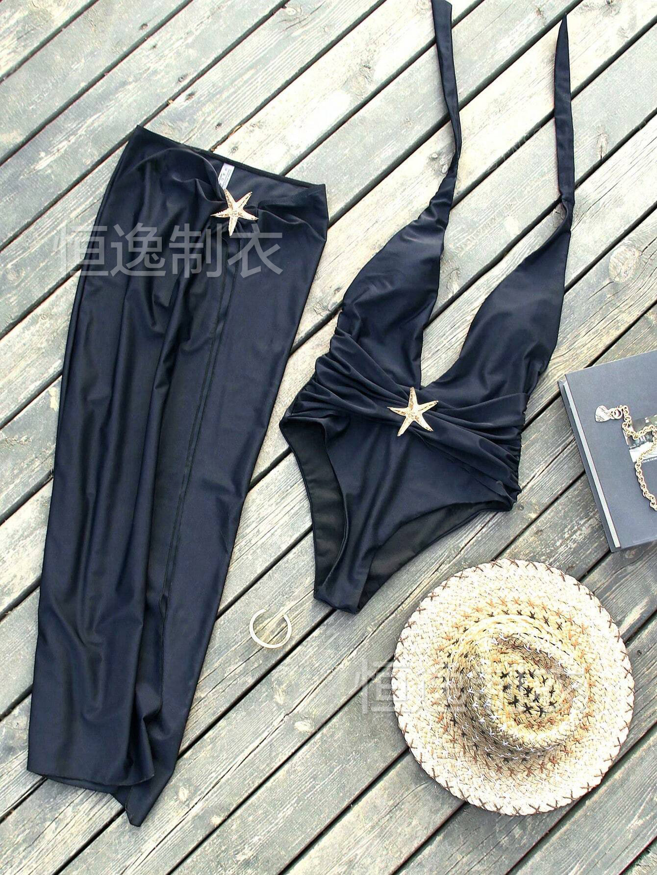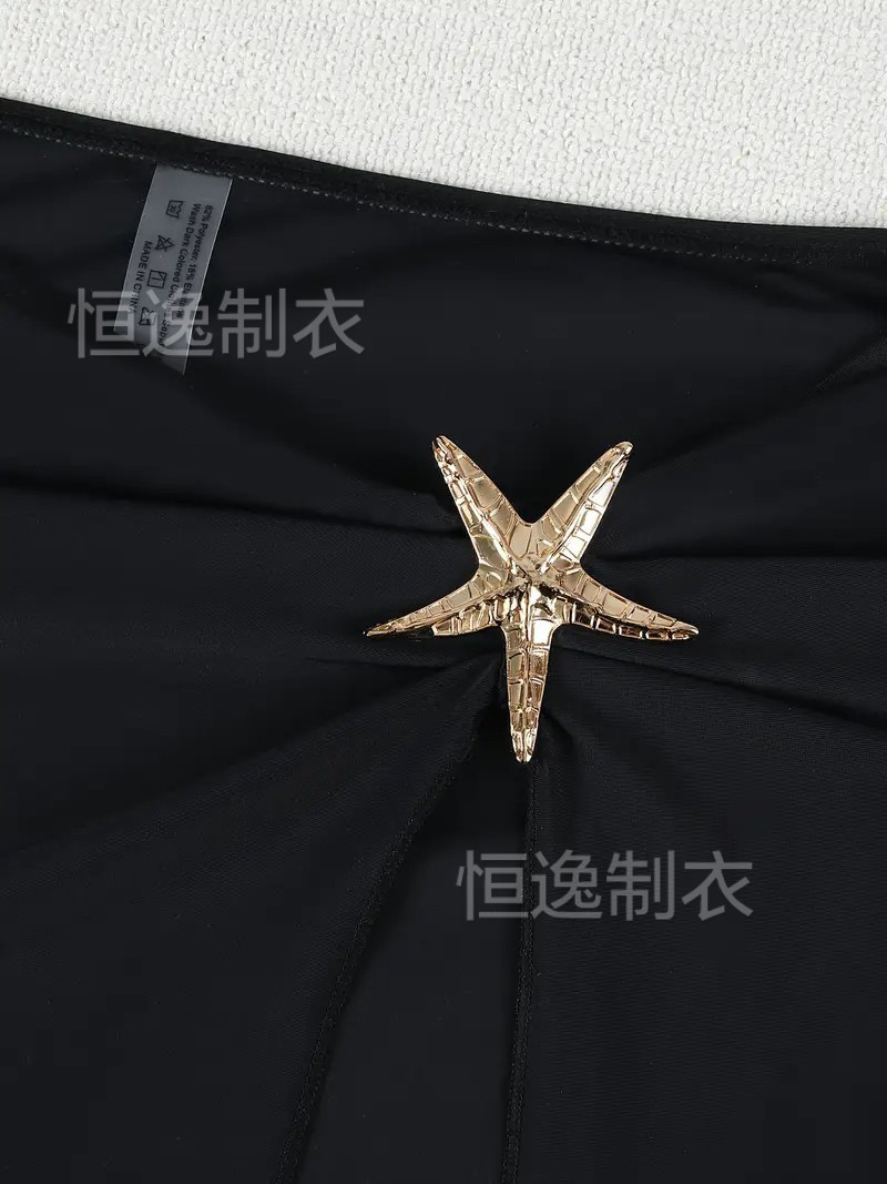 AliExpress 국경 간 섹시한 해변 롱 스커트 딥 V 원피스 여성 흑백 수영복 투피스 세트 2025 핫 스타일 Starfish