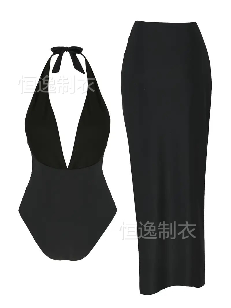AliExpress 국경 간 섹시한 해변 롱 스커트 딥 V 원피스 여성 흑백 수영복 투피스 세트 2025 핫 스타일 Starfish스토어 가기