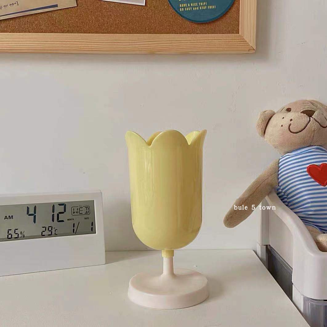 Ins 동일 스타일 튤립 펜 케이스 소녀의 하트 펜 케이스 화장품 브러시 저장 배럴 복고풍 꽃 장식품 사진 소품스토어 가기