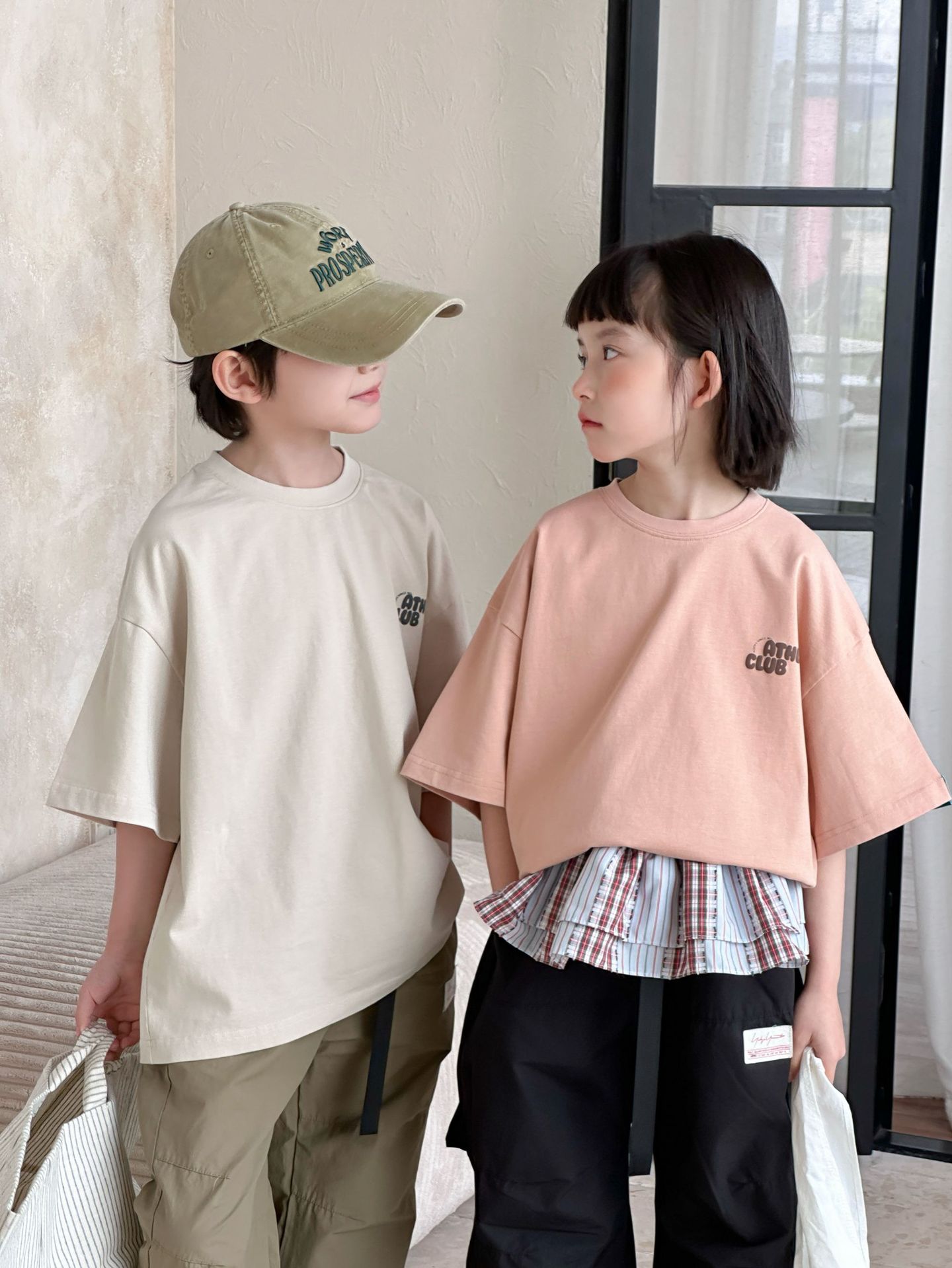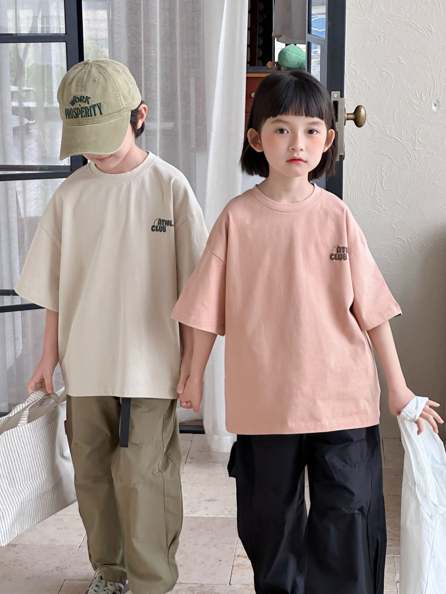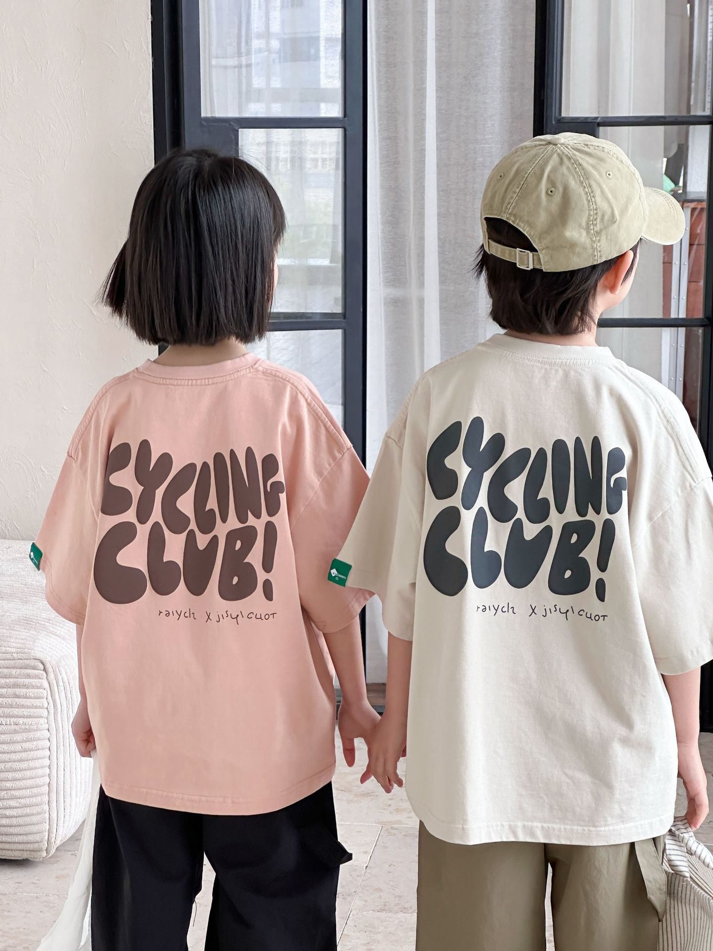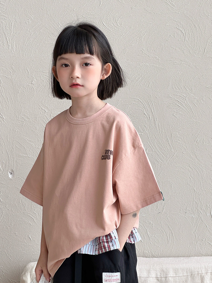 [클리어아웃 세일] 2025년 여름 신상 아동용 레터 프린트 반팔 루즈 캐주얼 티셔츠(남아 및 여아용)