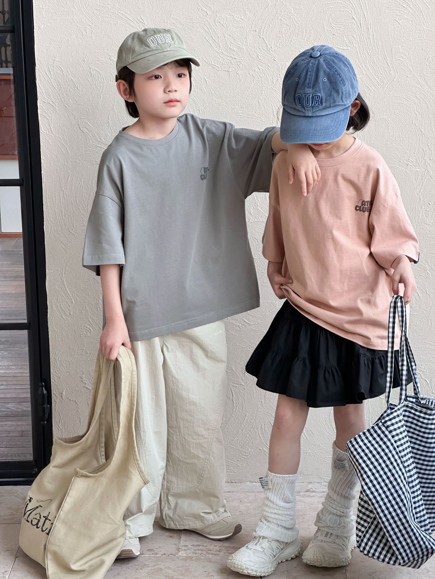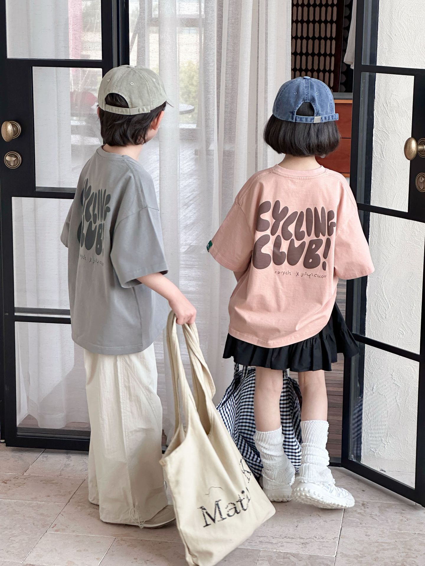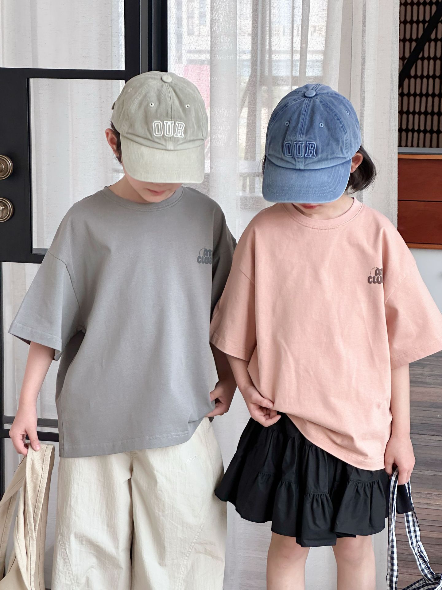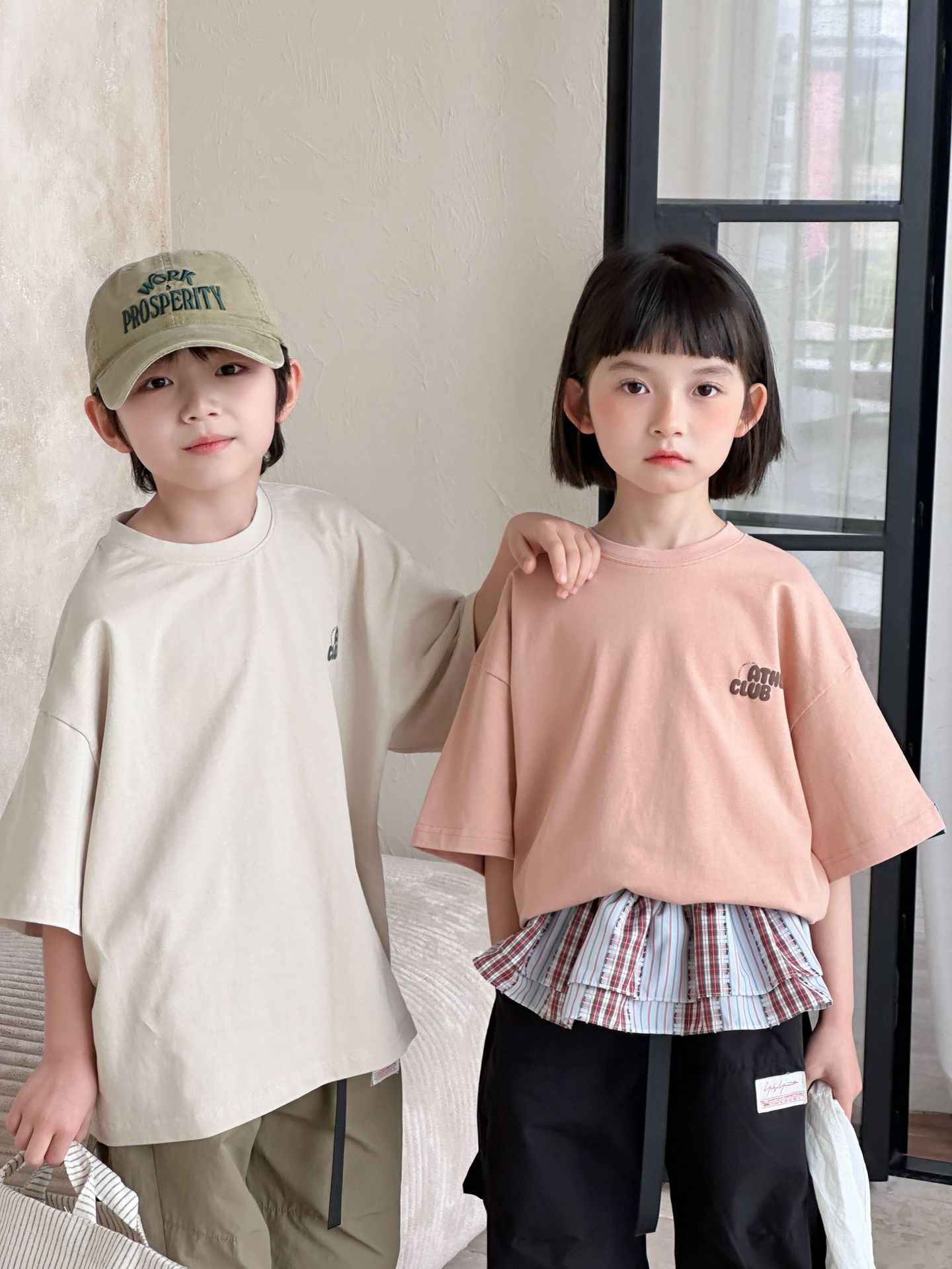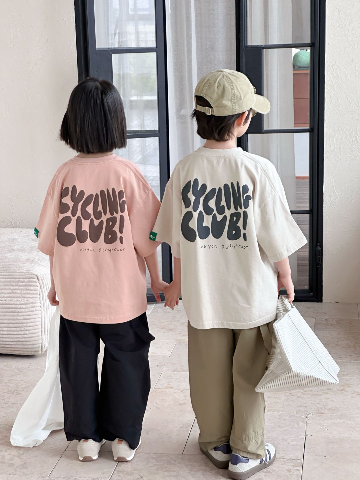 [클리어아웃 세일] 2025년 여름 신상 아동용 레터 프린트 반팔 루즈 캐주얼 티셔츠(남아 및 여아용)