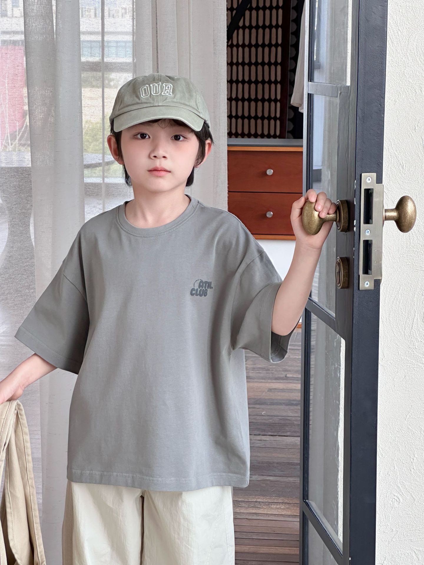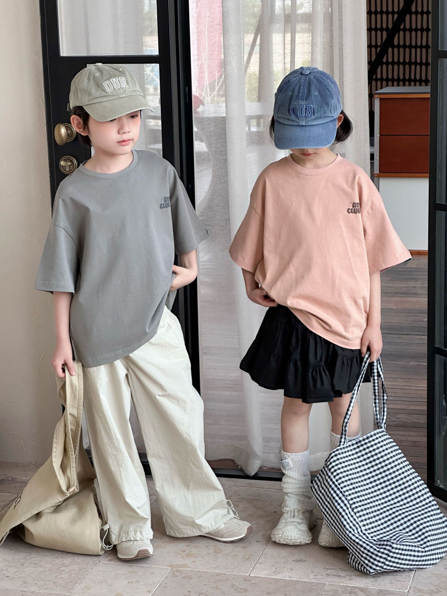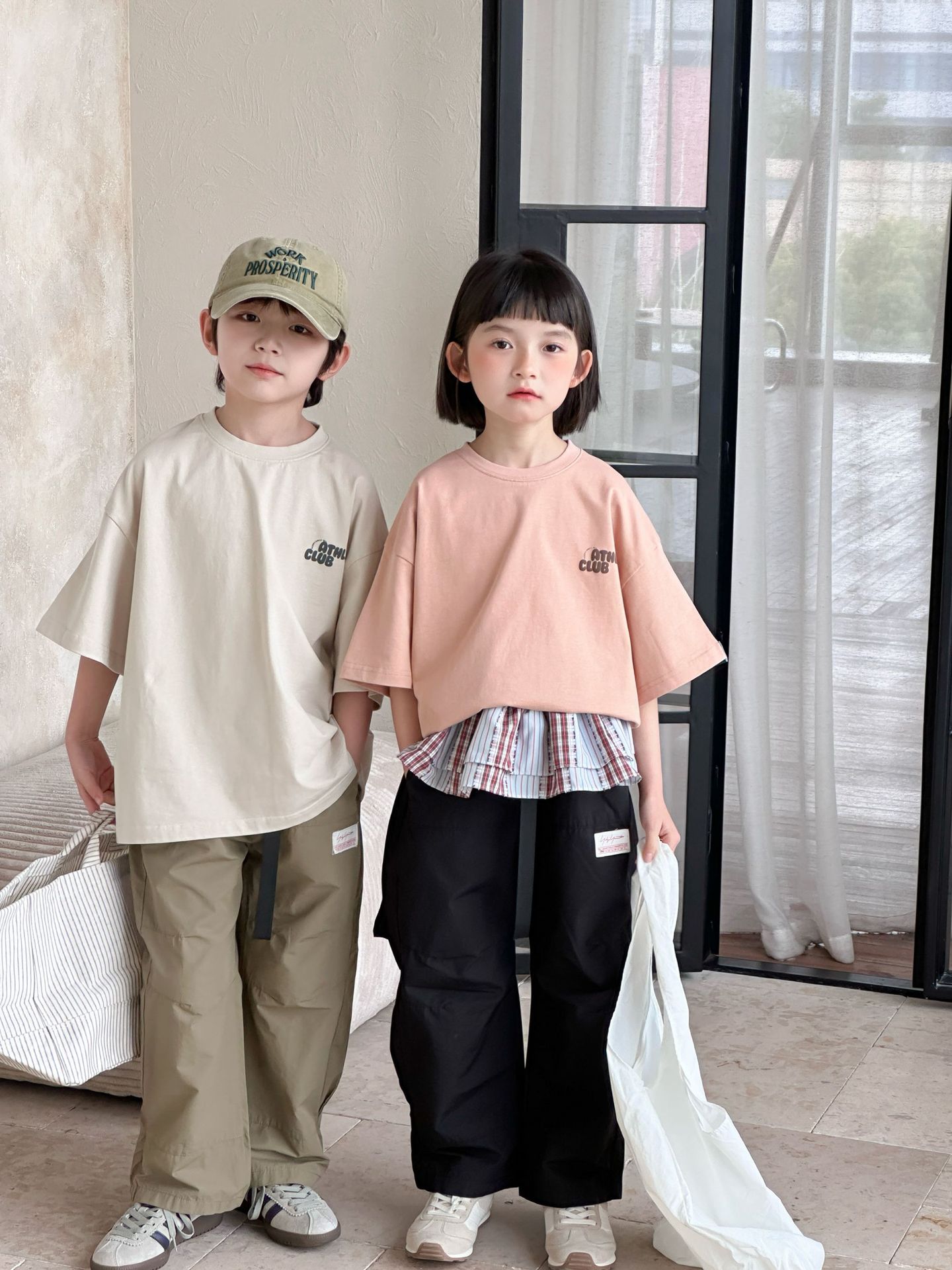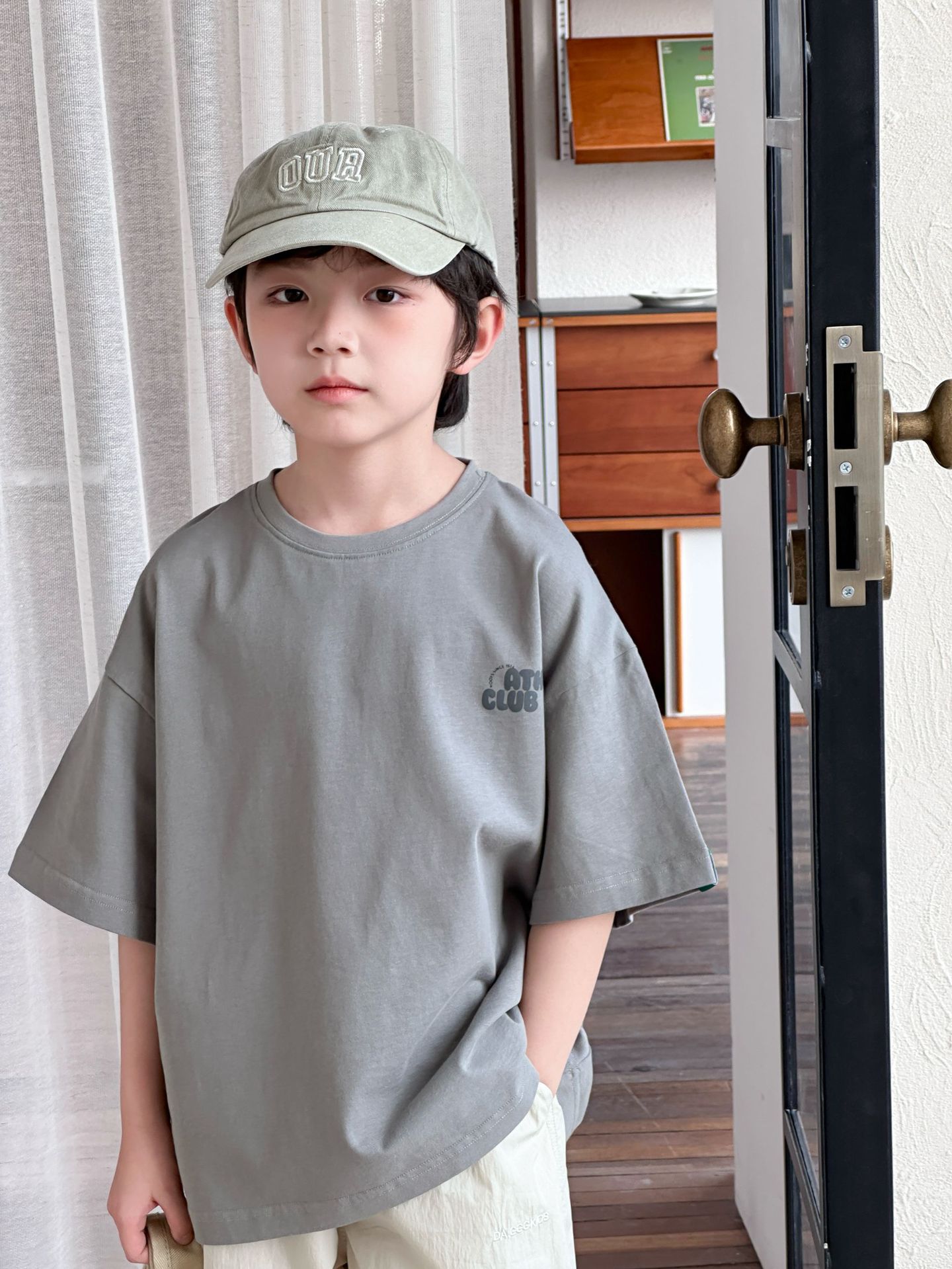 [클리어아웃 세일] 2025년 여름 신상 아동용 레터 프린트 반팔 루즈 캐주얼 티셔츠(남아 및 여아용)