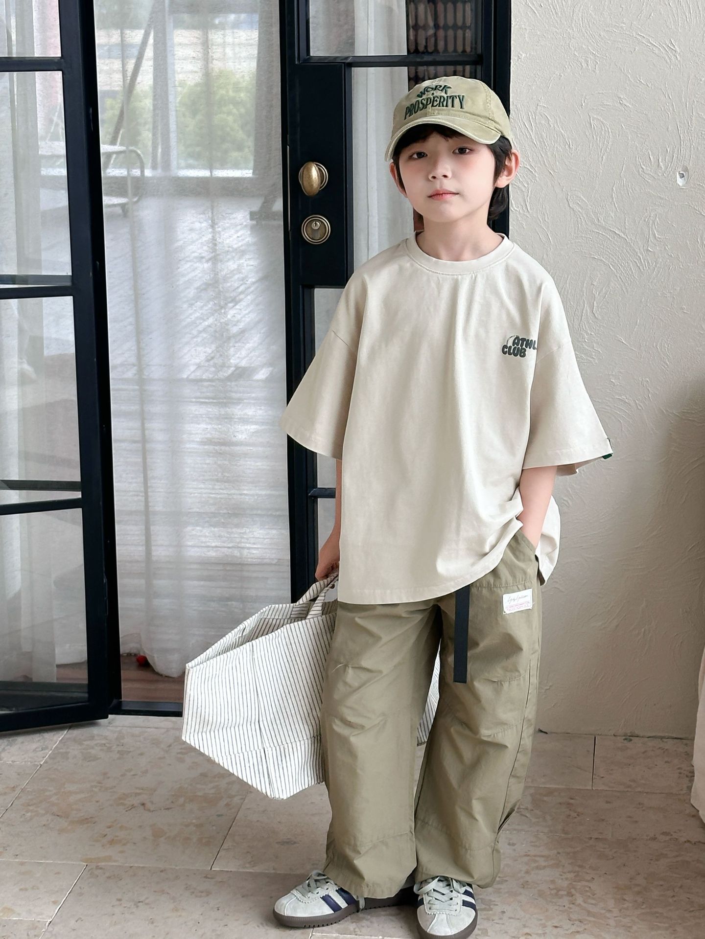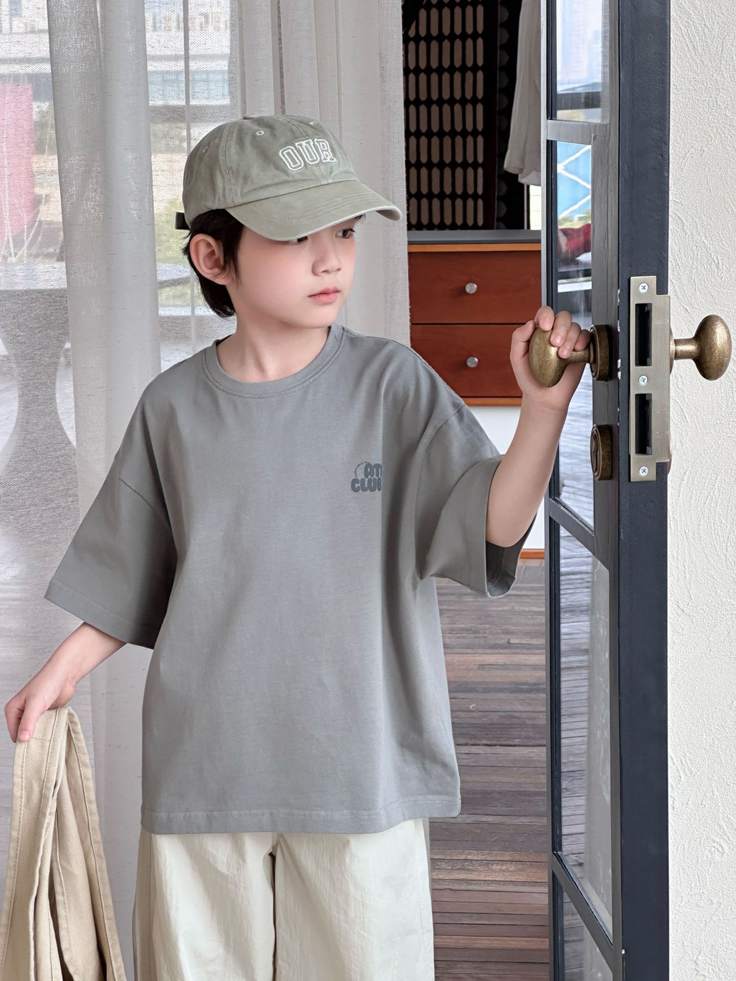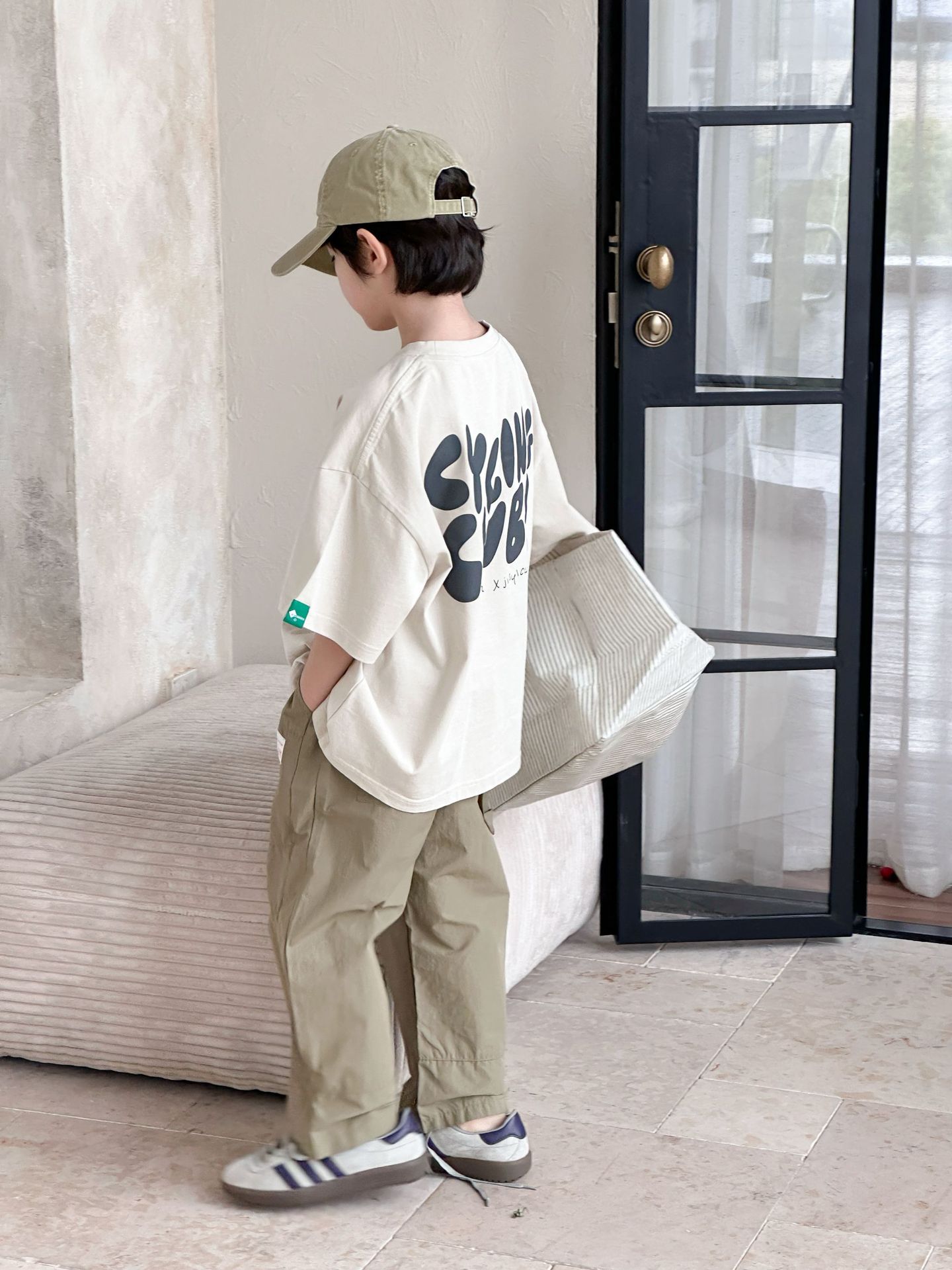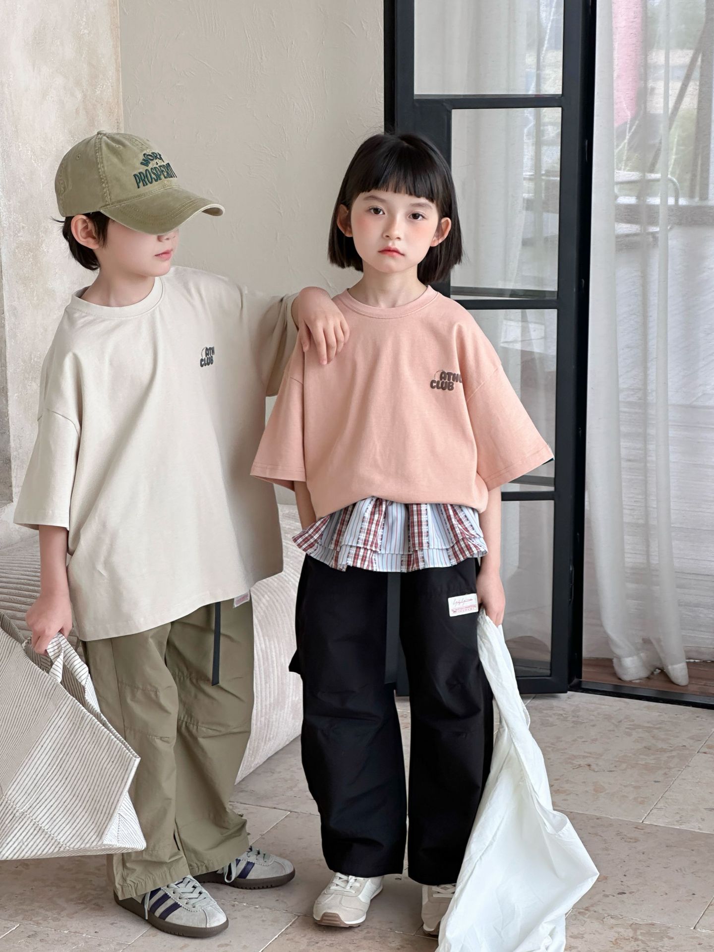 [클리어아웃 세일] 2025년 여름 신상 아동용 레터 프린트 반팔 루즈 캐주얼 티셔츠(남아 및 여아용)