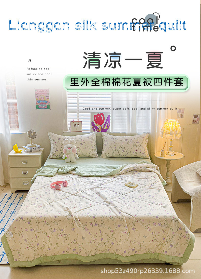 • 1.8m 여름이불 4종세트 [여름이불 1.8* 2.0m장 2.3* 2.5m베개 48*74 2장]