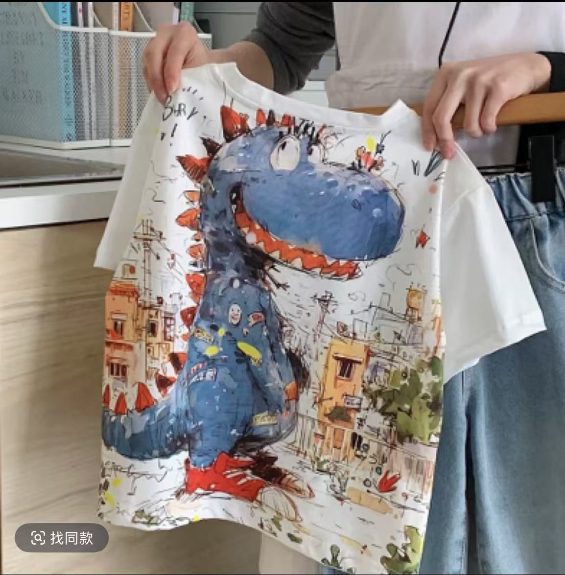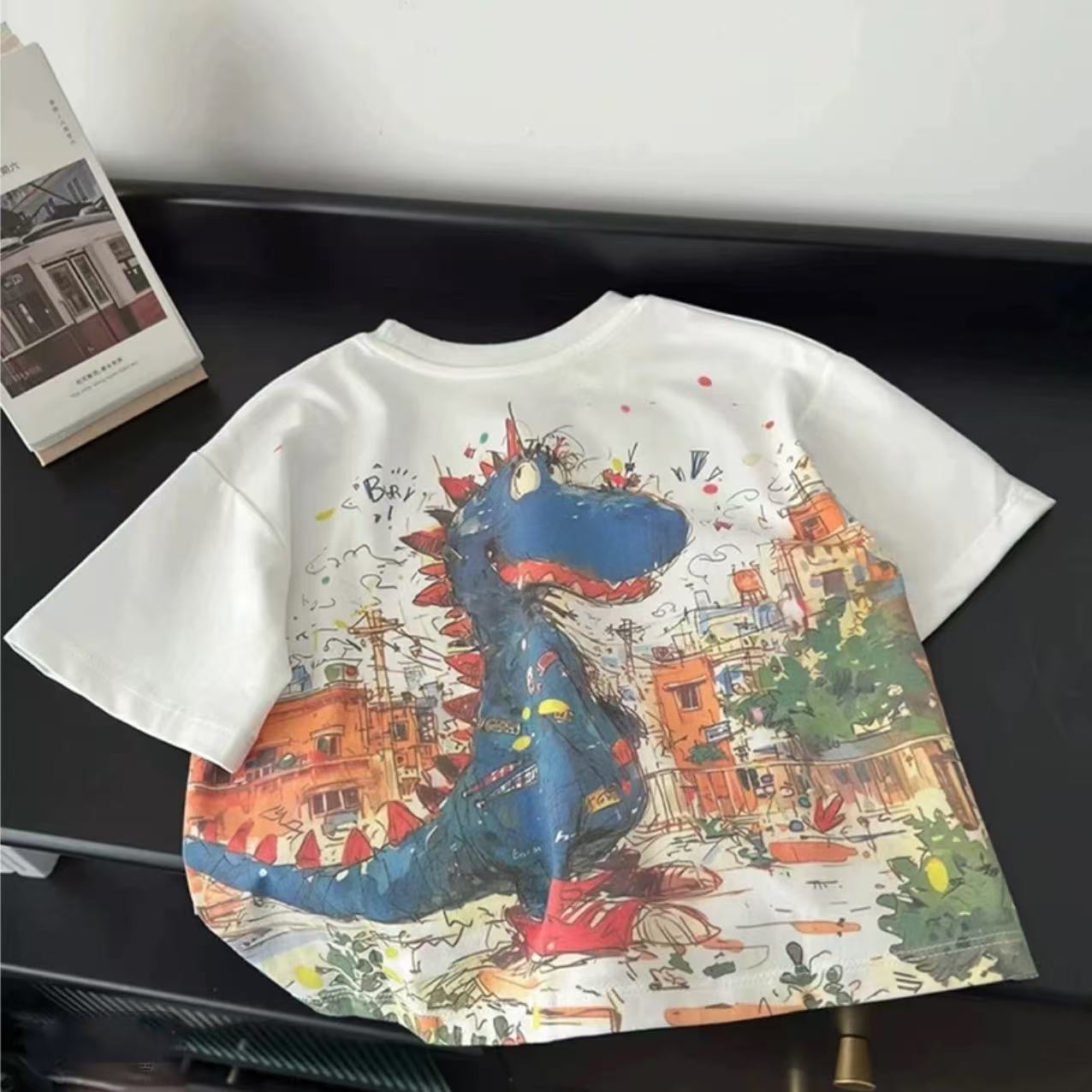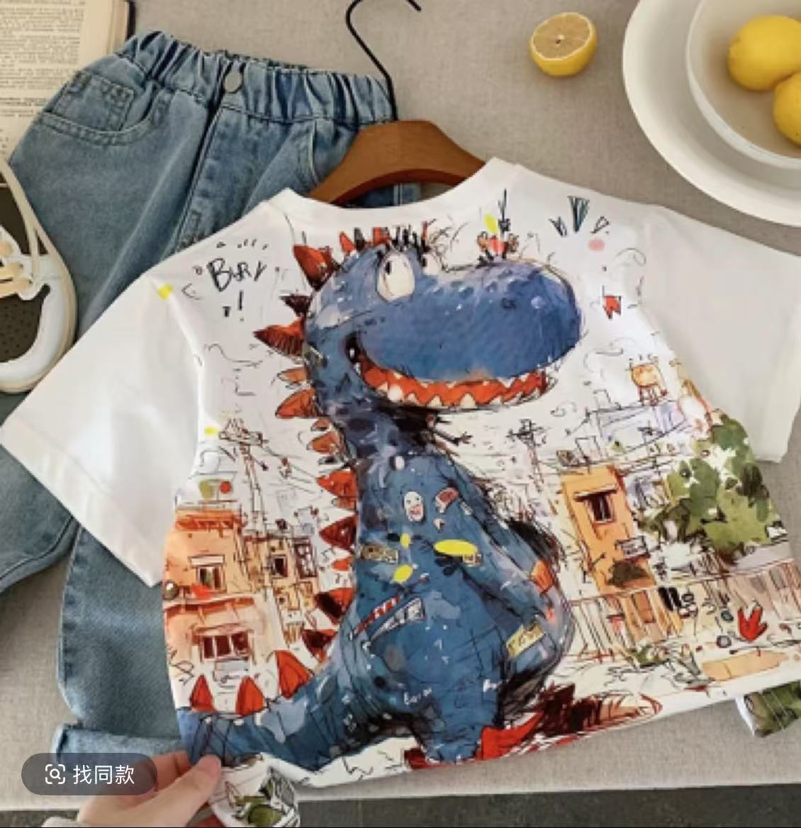 소년 면 공룡 반팔 티셔츠 여름 2025 새로운 아동복 어린이 아기 낙서 탑스토어 가기