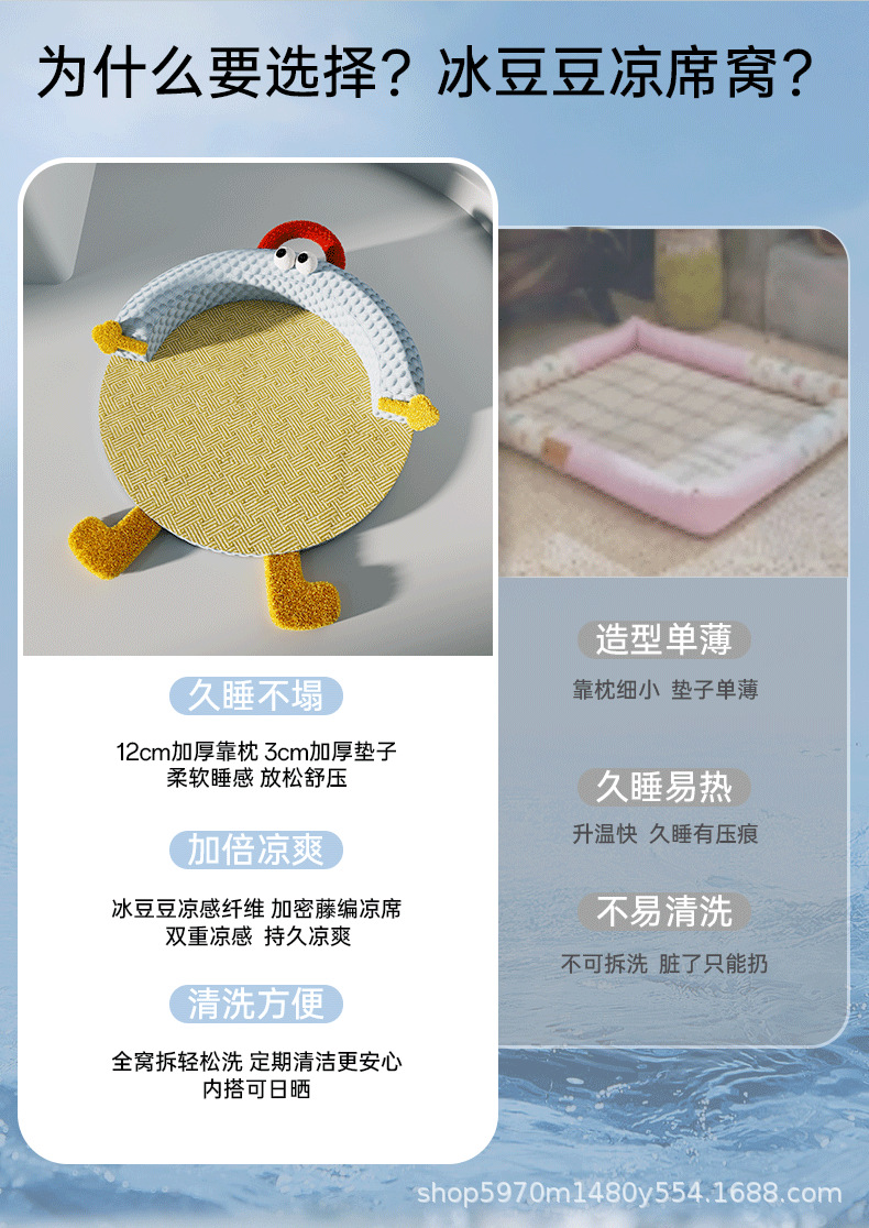 고양이 둥지 사계절 유니버설 아이스 빈 등나무 매트 슈퍼 대형 이동식 및 세척 가능한 여름 고양이 소파 애완 동물 잠자는 둥지스토어 가기