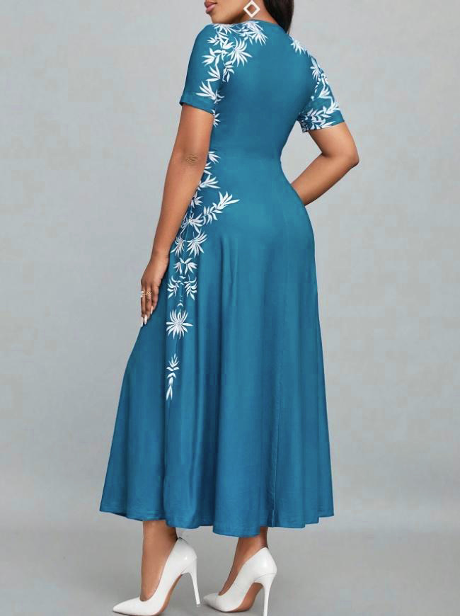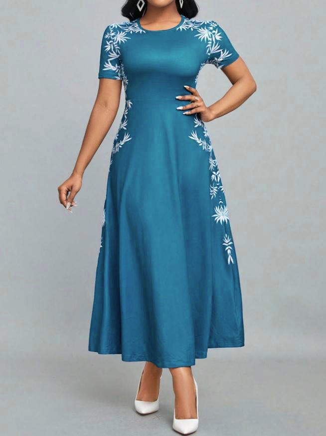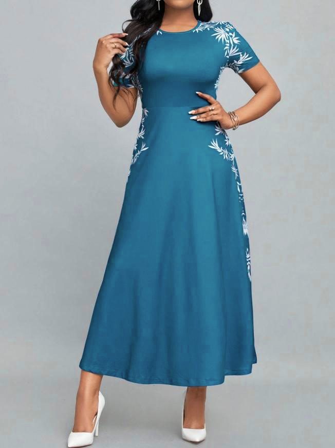 2025 유럽과 미국 국경 새로운 여성의 기질 둥근 목 인쇄 패션 높은 허리 원피스
