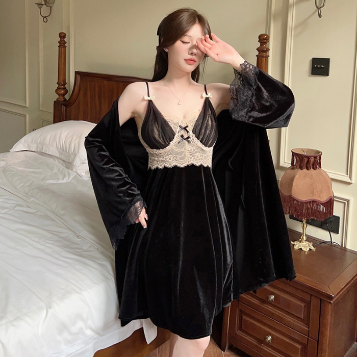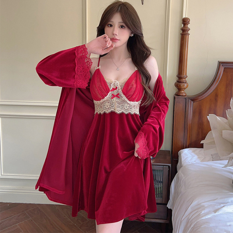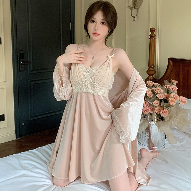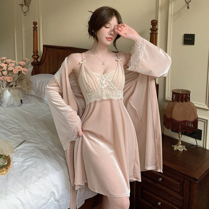 골드 벨벳 섹시한 서스펜더 잠옷 여성 잠옷 잠옷 긴팔 투피스 세트 가을, 겨울 레이스 홈웨어 겨울스토어 가기