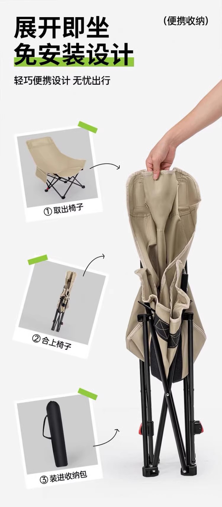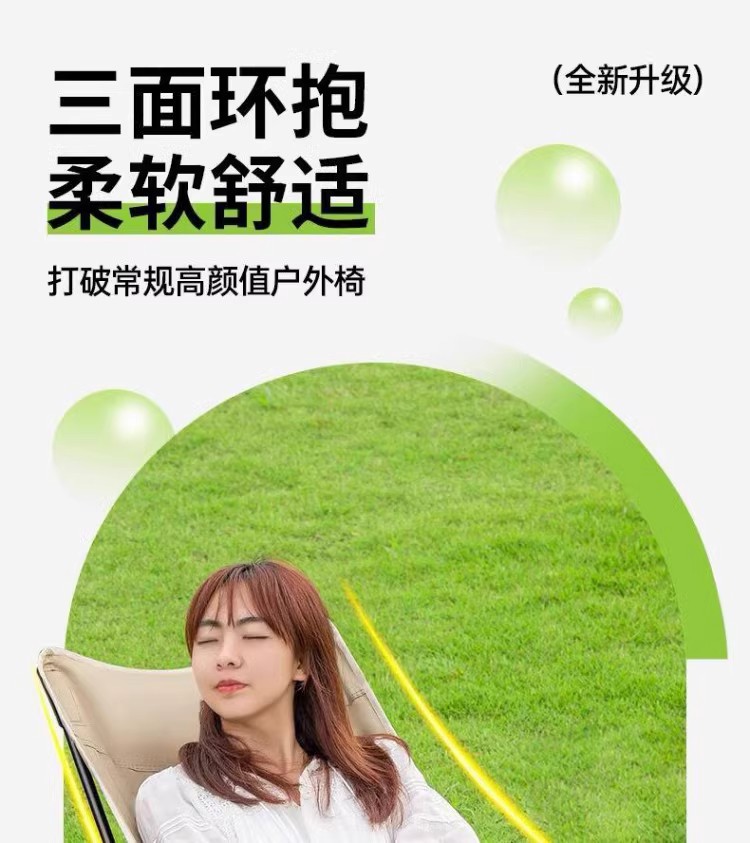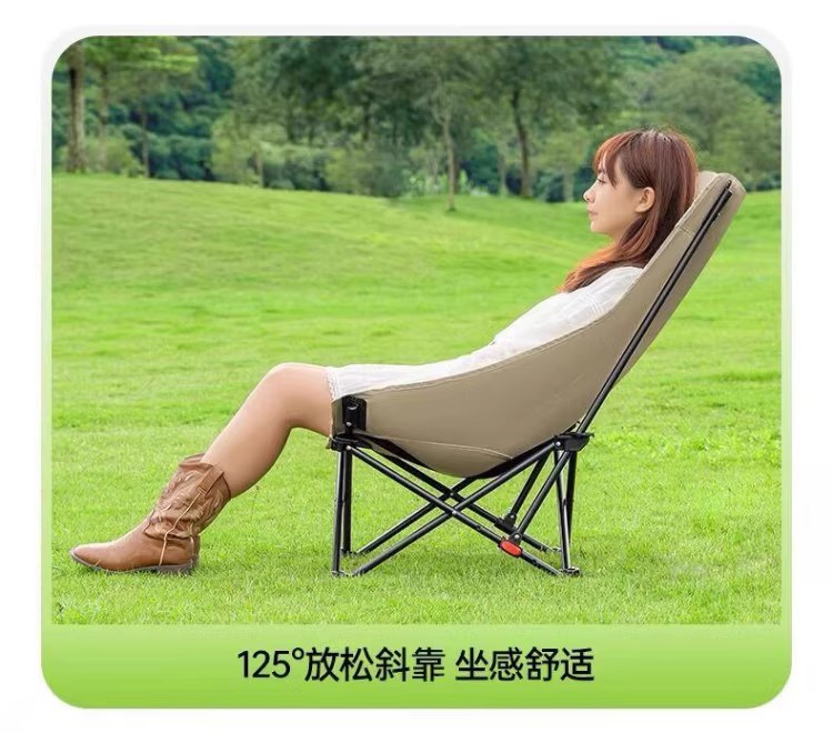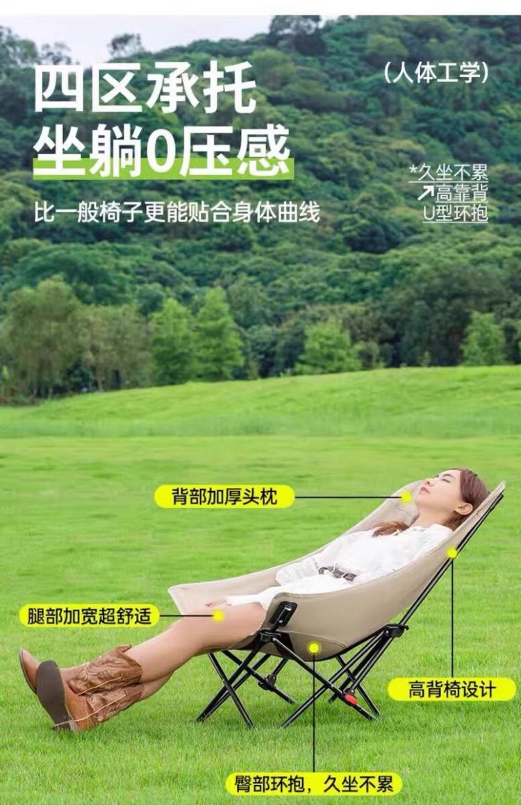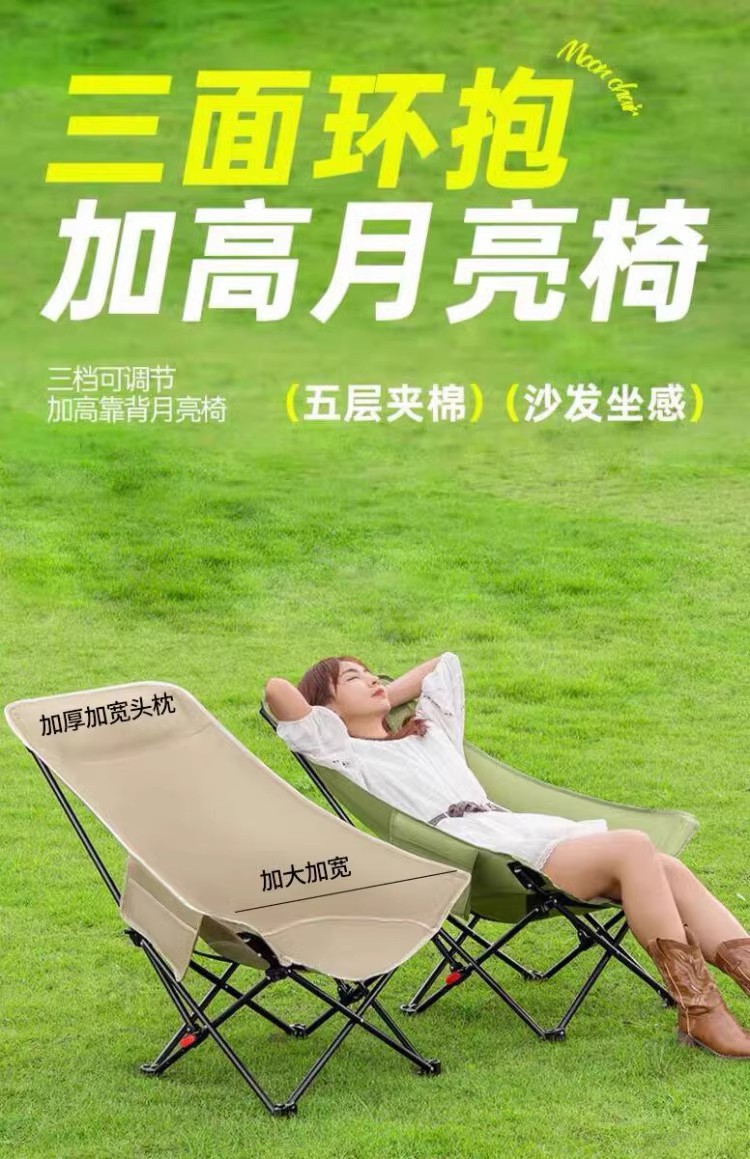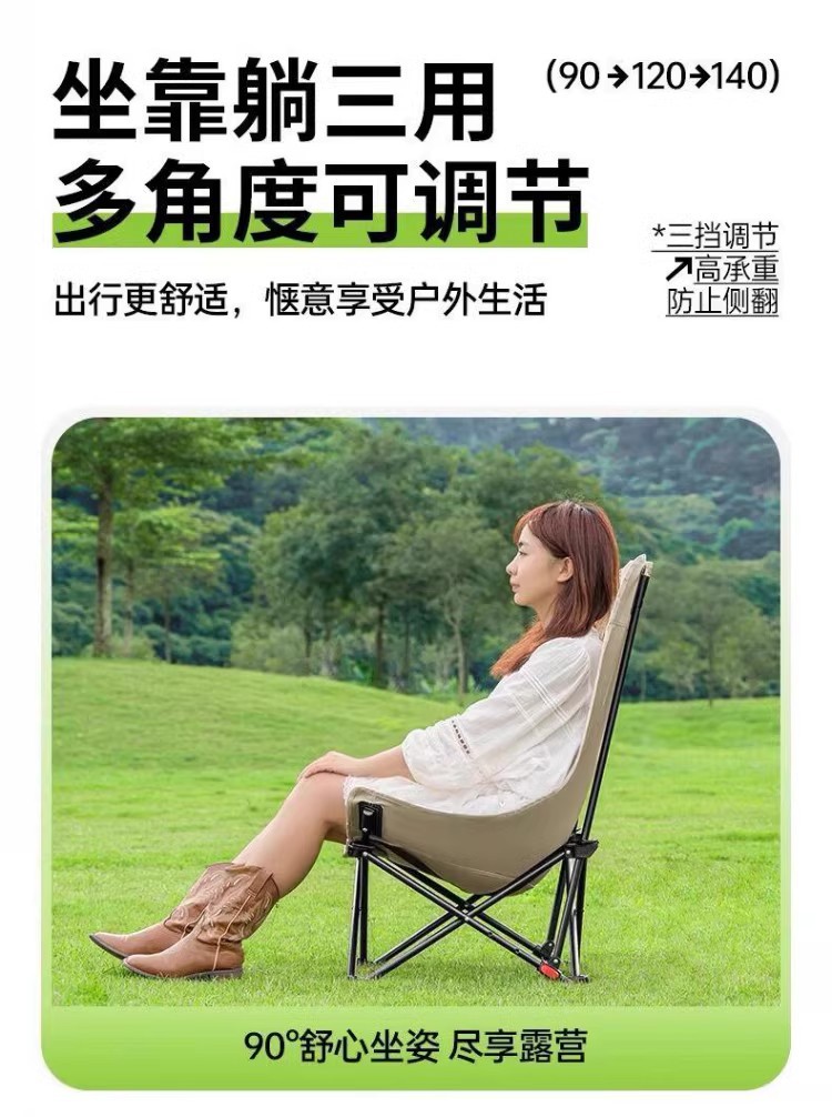 高靠背月亮椅户外露营折叠便携式牛津布带靠枕三挡调节带腿托躺椅
