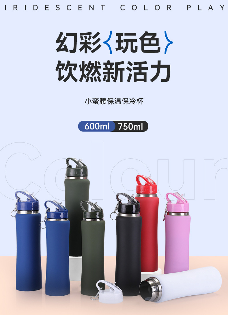 국경 304 스테인레스 스틸 빨대 컵 작은 허리 대용량 보온병 컵 야외 휴대용 스포츠 주전자