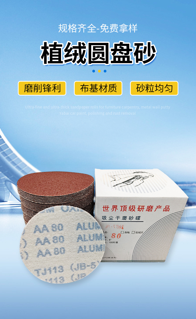 5inch 공압 연마 사포 jb-5 천 기반 플로킹 디스크 샌딩 백 벨벳 원형 연마 사포 샌딩 천 시트 도매