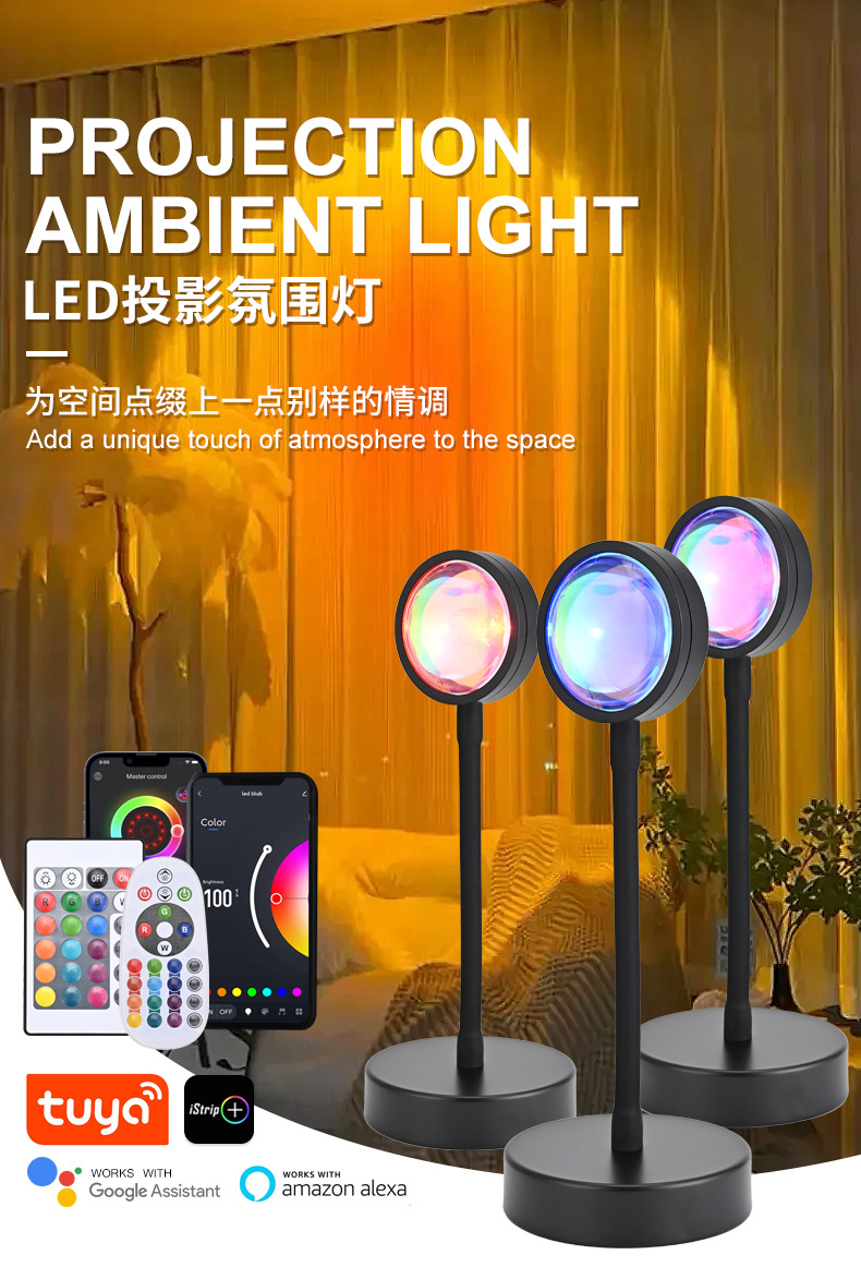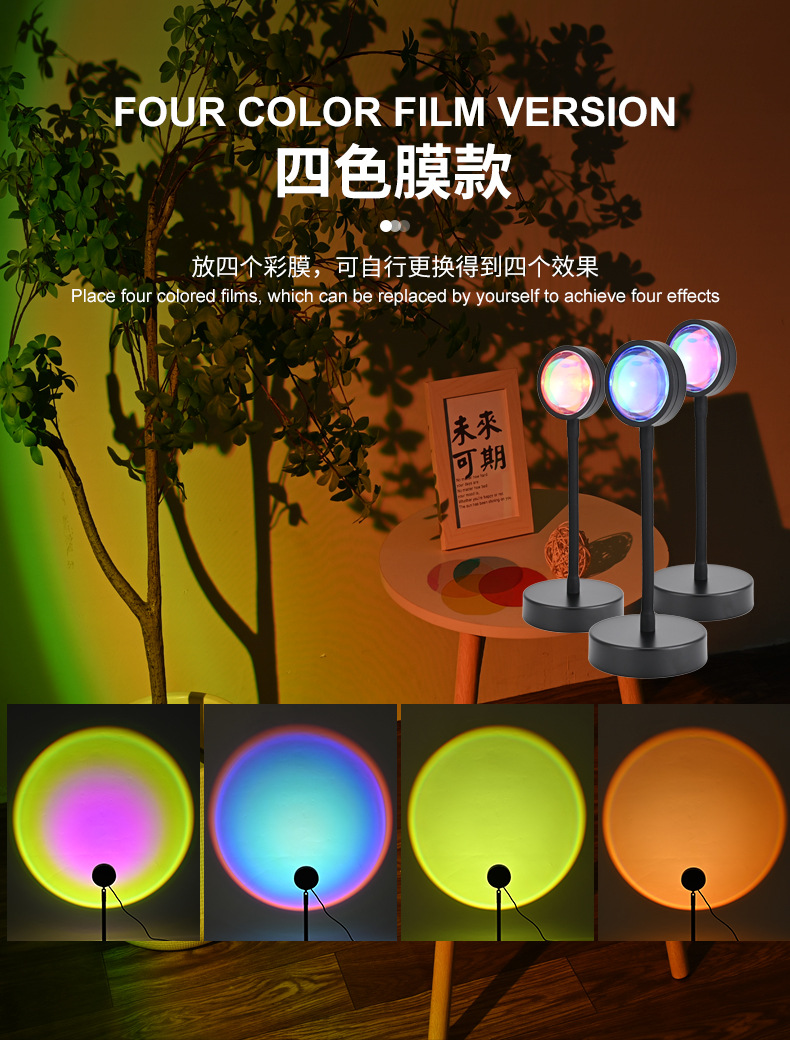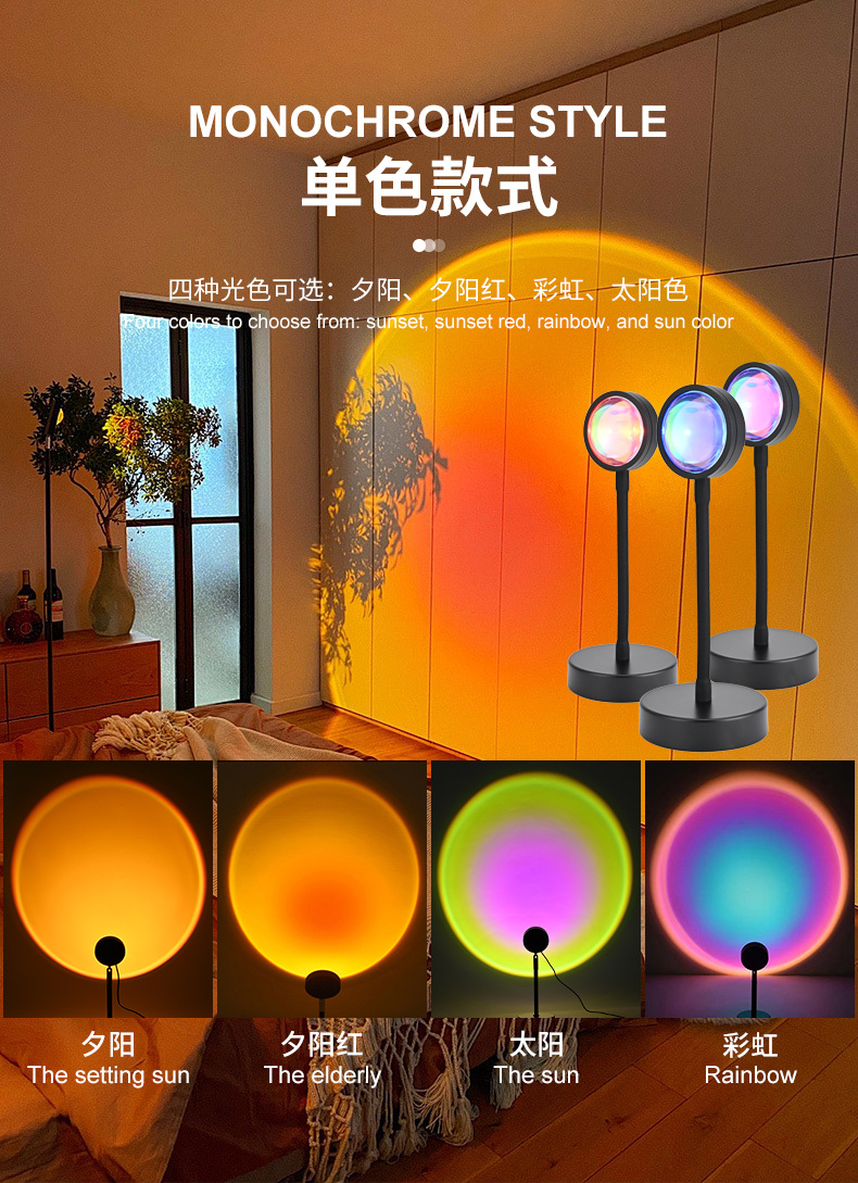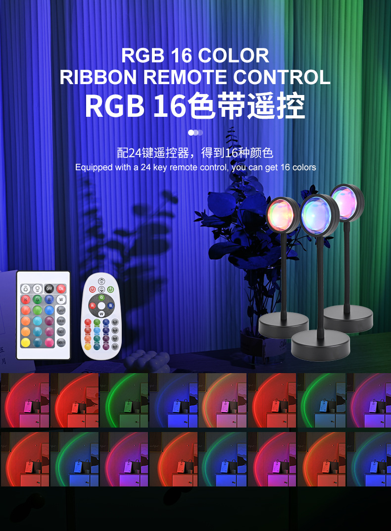 인터넷 연예인 일몰 램프 일몰 램프 RGB 16 색 분위기 램프 침실 보조 조명 야간 조명 프로젝션 일몰 램프