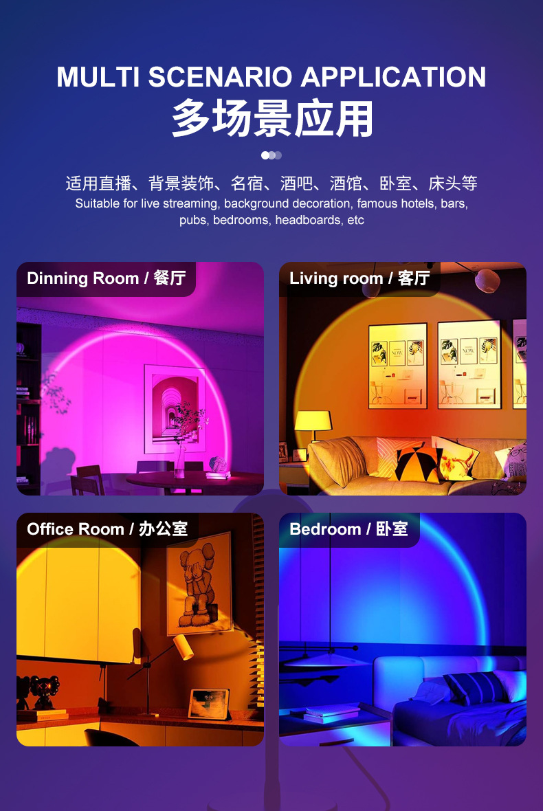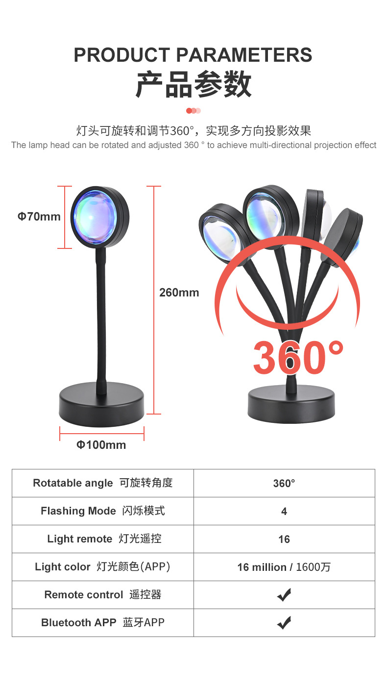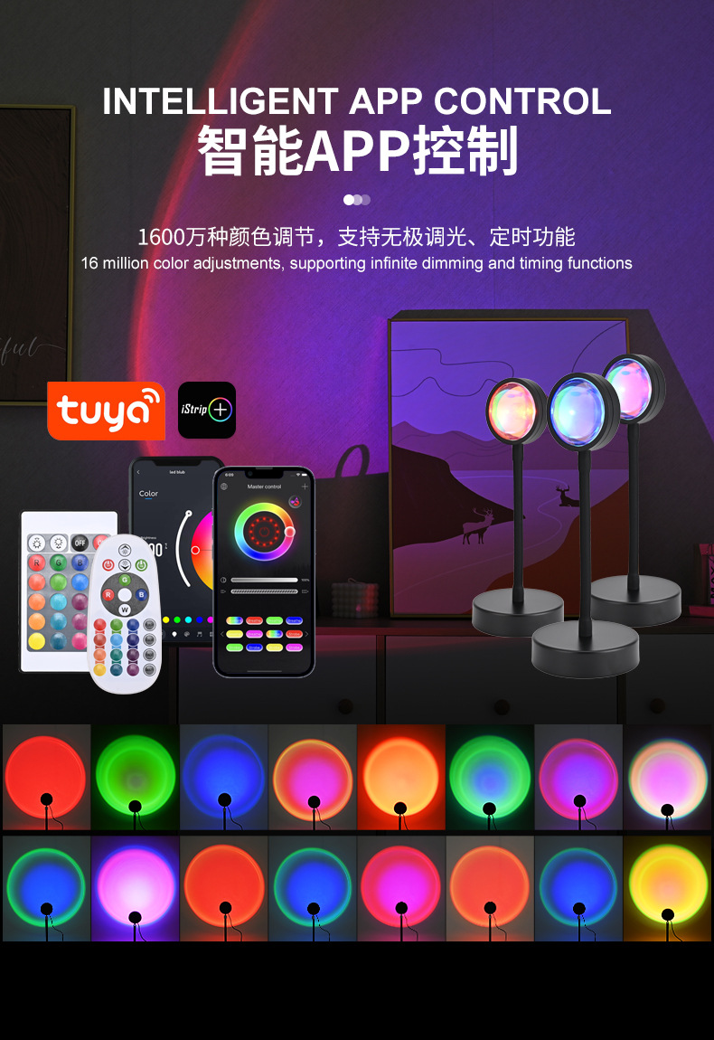 인터넷 연예인 일몰 램프 일몰 램프 RGB 16 색 분위기 램프 침실 보조 조명 야간 조명 프로젝션 일몰 램프