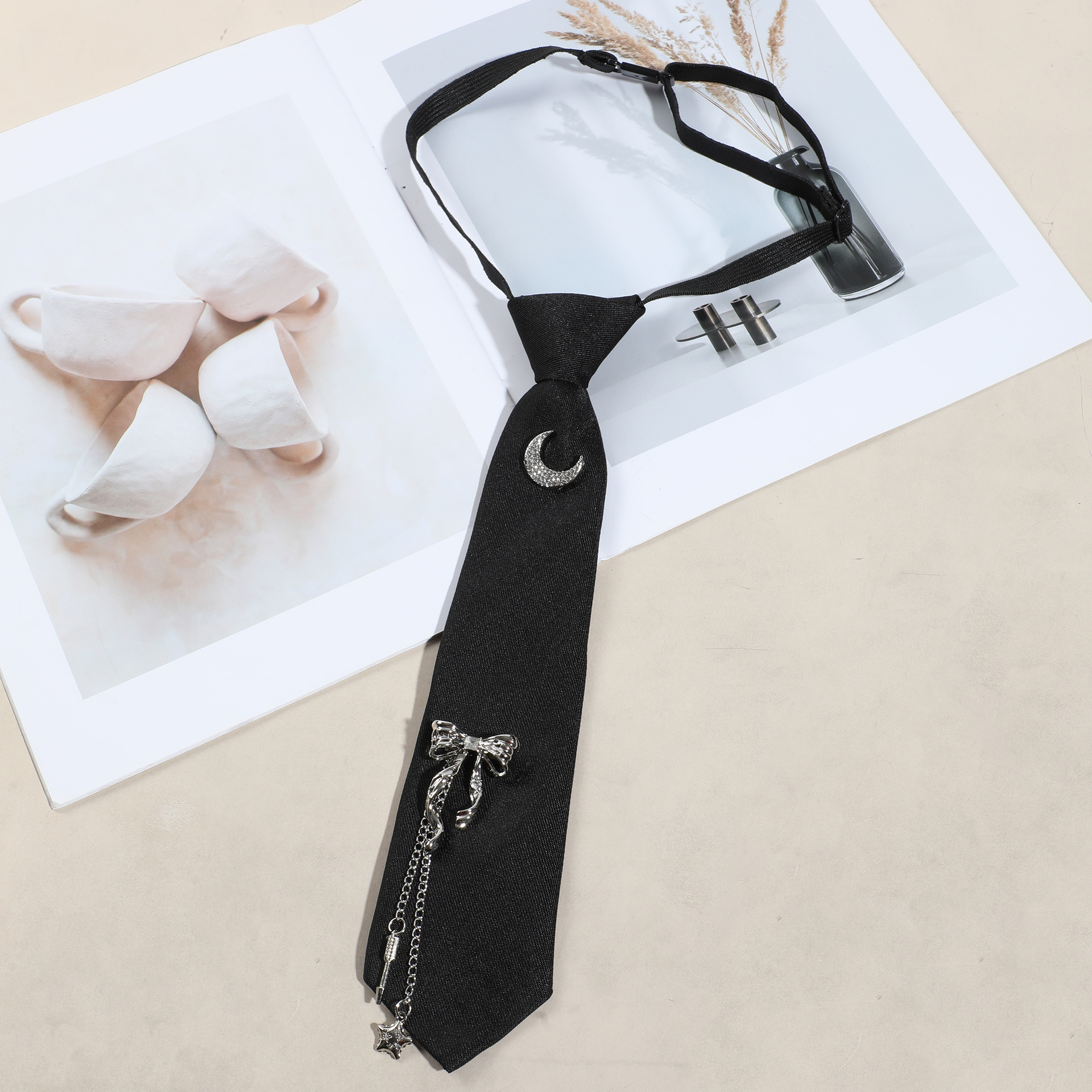 체인 블랙 타이 jk 여성 오리지널 디자인 일본 학생 대학 스타일 무료 짧은 액세서리 남성 트렌드