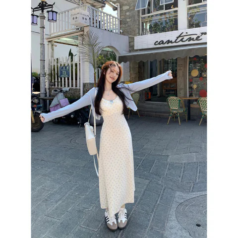 2025 패션 세트 여성 레이스 스티칭 코트 봄과 여름 곰 프린트 멜빵 원피스 투피스 도매스토어 가기