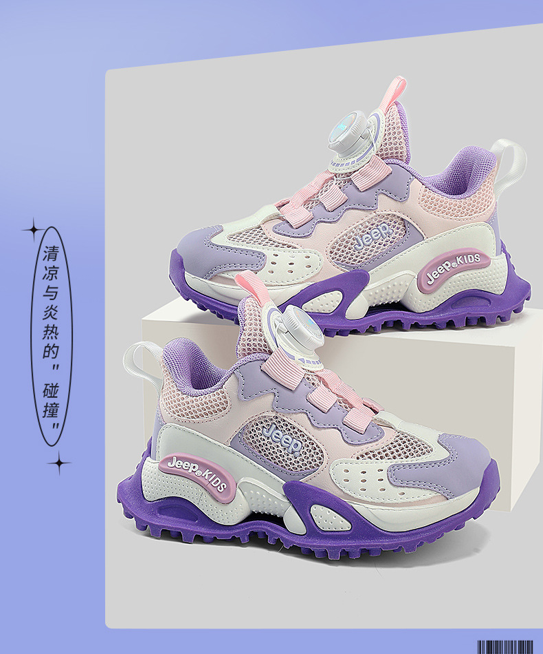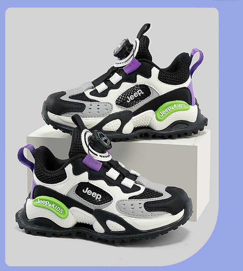 지프 여성 신발 2025 여름 새로운 운동화 편안한 경량 소년 달리기 신발 회전 버튼 어린이 신발