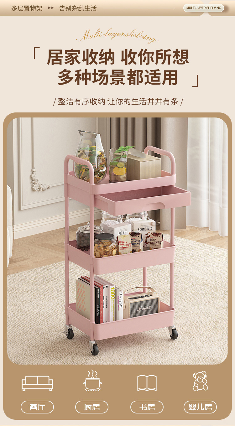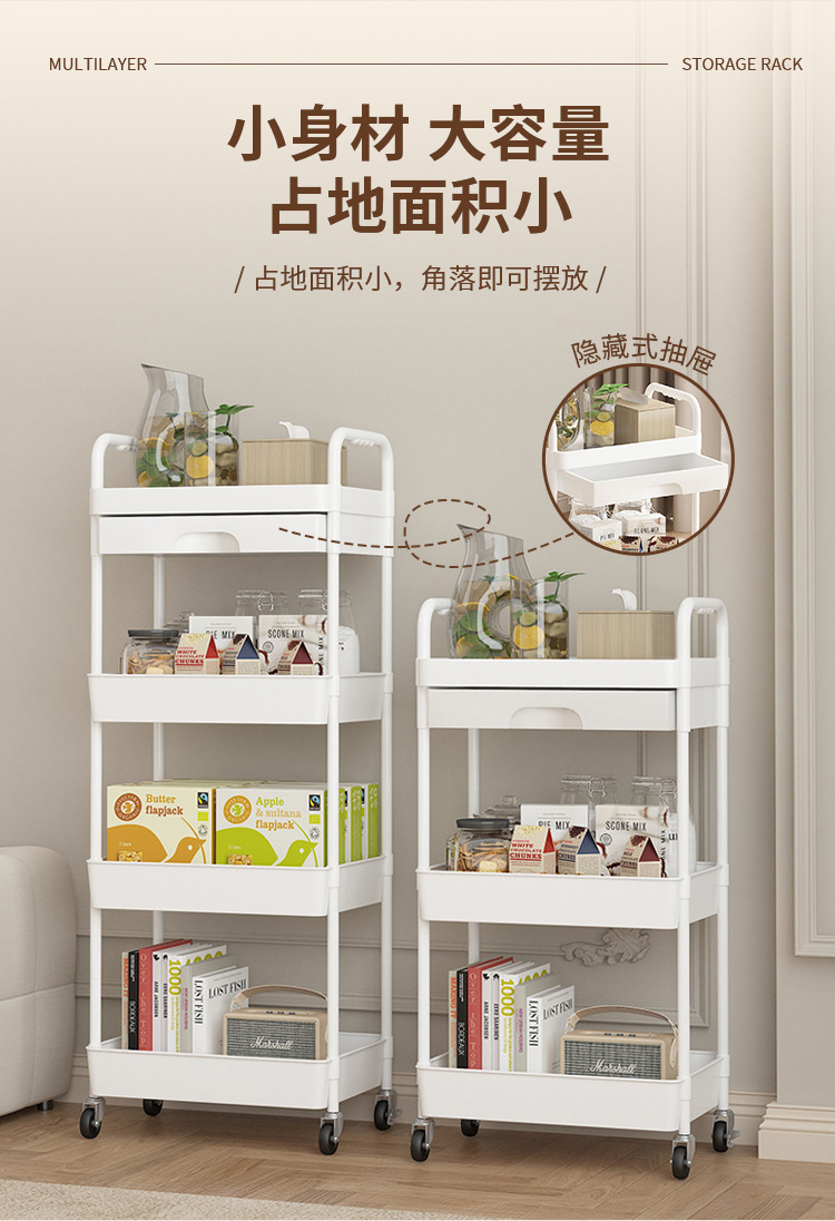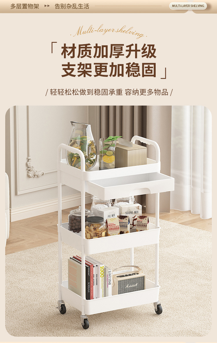 높은 수준의 거리 유니버설 휠 스토리지 랙 거실 스낵 스토리지 랙 트롤리를 갖춘 다층 이동식 스토리지 랙 주방스토어 가기