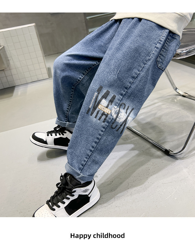 소년 바지 봄 청바지 어린이 가을 캐주얼 바지 2025 새로운 유행 한국식 간단한 바지