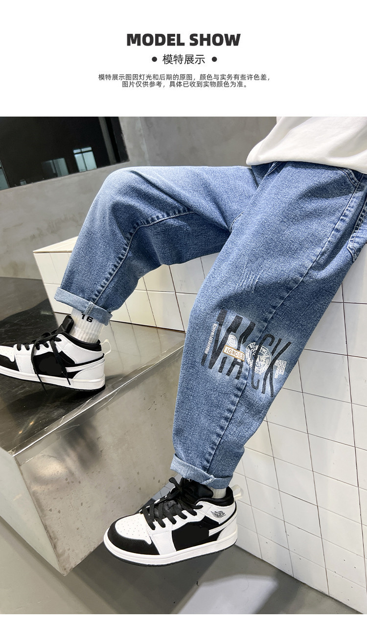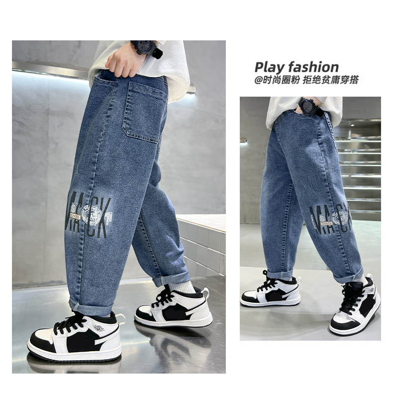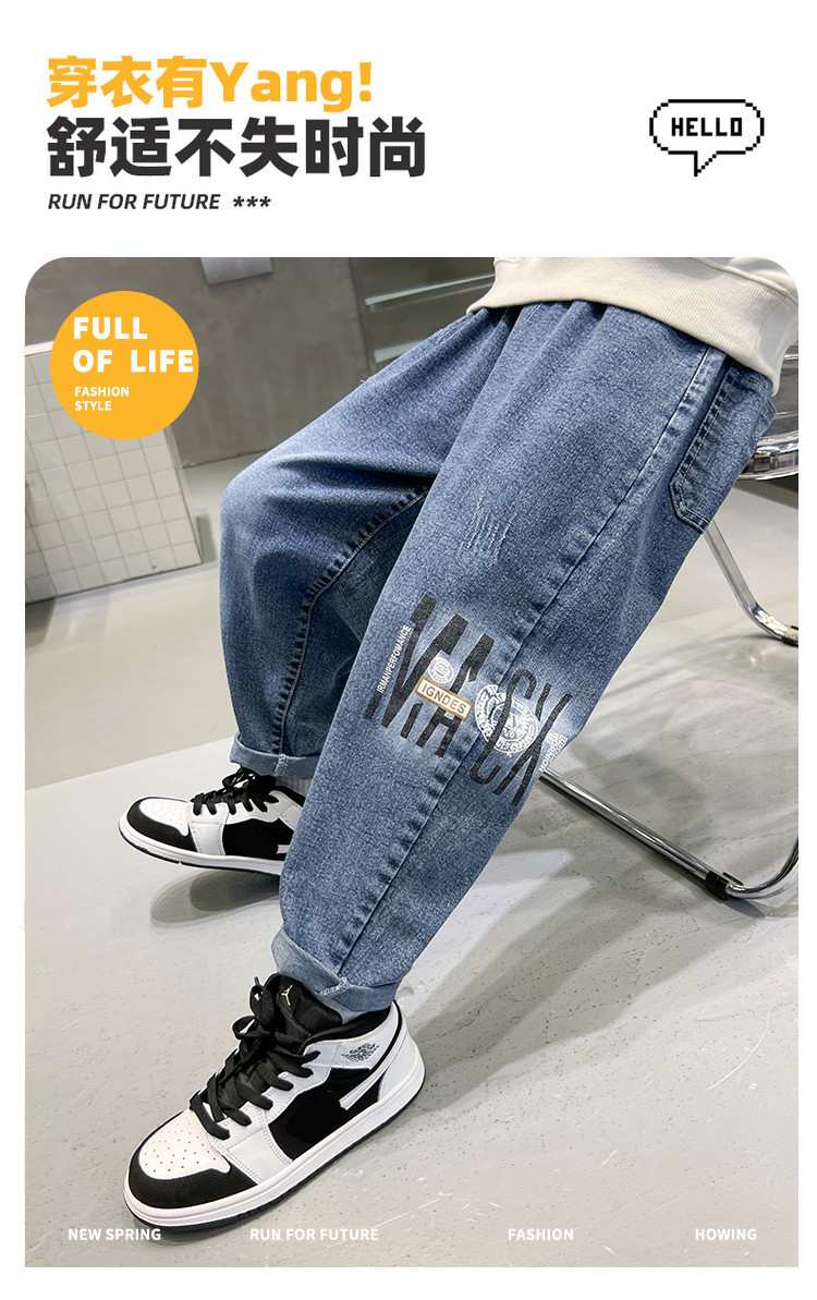 소년 바지 봄 청바지 어린이 가을 캐주얼 바지 2025 새로운 유행 한국식 간단한 바지스토어 가기