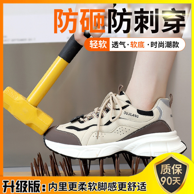노동 보호 신발 여성의 새로운 스매싱 방지 및 펑크 방지 오래 서 피곤하지 않은 발 증가 두꺼운 단독 내마모성 단열 편안한 안전 신발