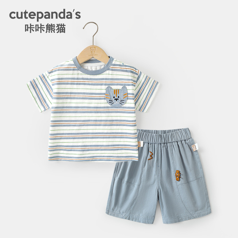 카카 팬더 아기 소년의 옷 세트 반팔 티셔츠 바지 여름 소녀 아기 반바지 두 조각스토어 가기