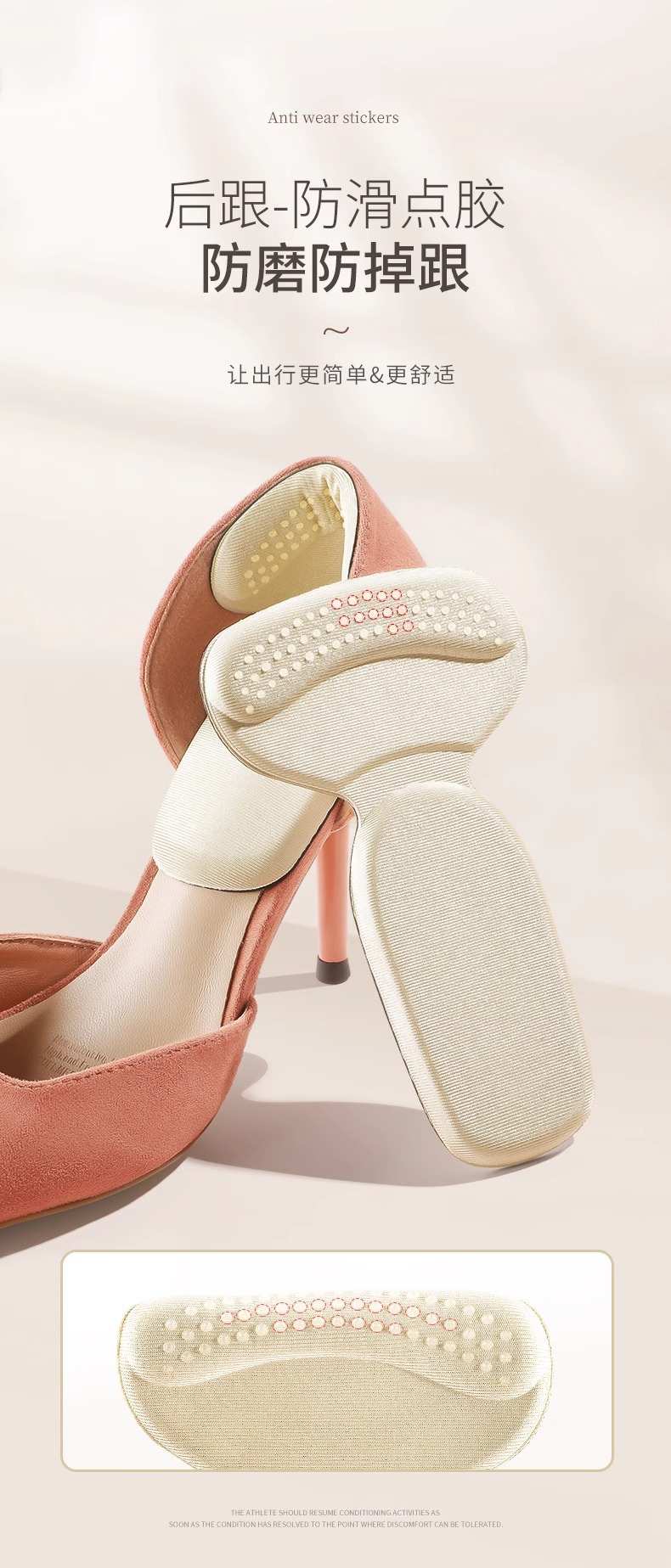 무료 배송 4D 투인원 T자형 디스펜스 힐 스티커 두꺼운 스폰지 마모 방지 발 뒤꿈치 하이힐 여성용 깔창스토어 가기