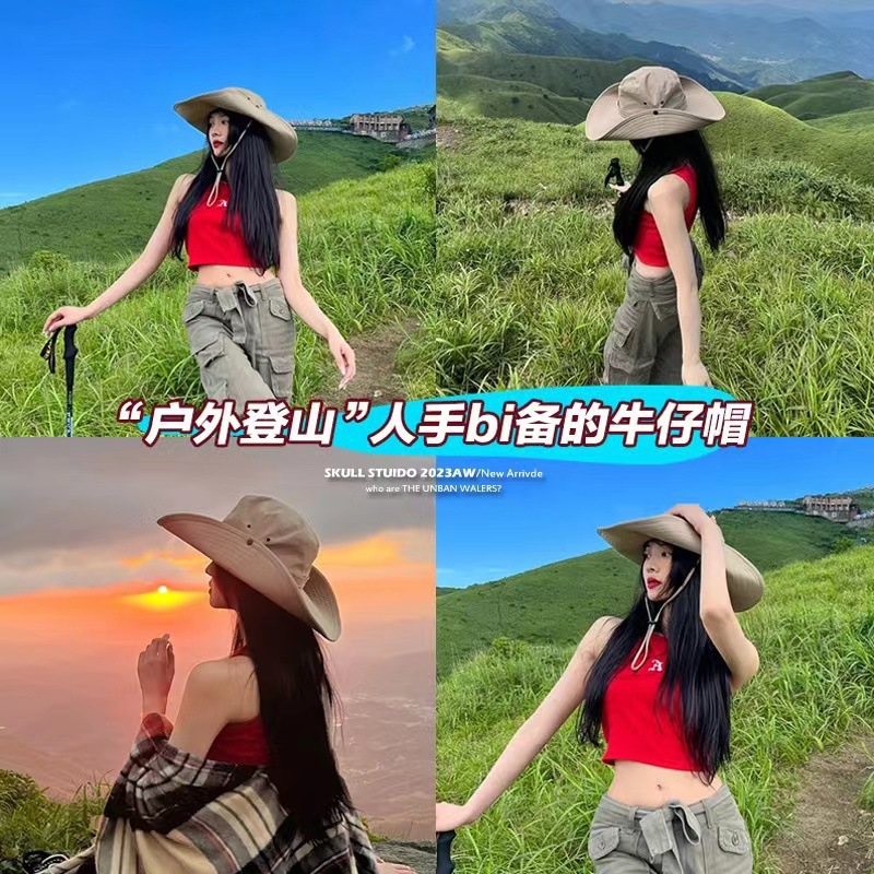 등산 모자 어부의 모자 햇살 모자 선 스크린 모자 등산 장비 남성 야외 등산 여름 용품 카우보이 모자스토어 가기