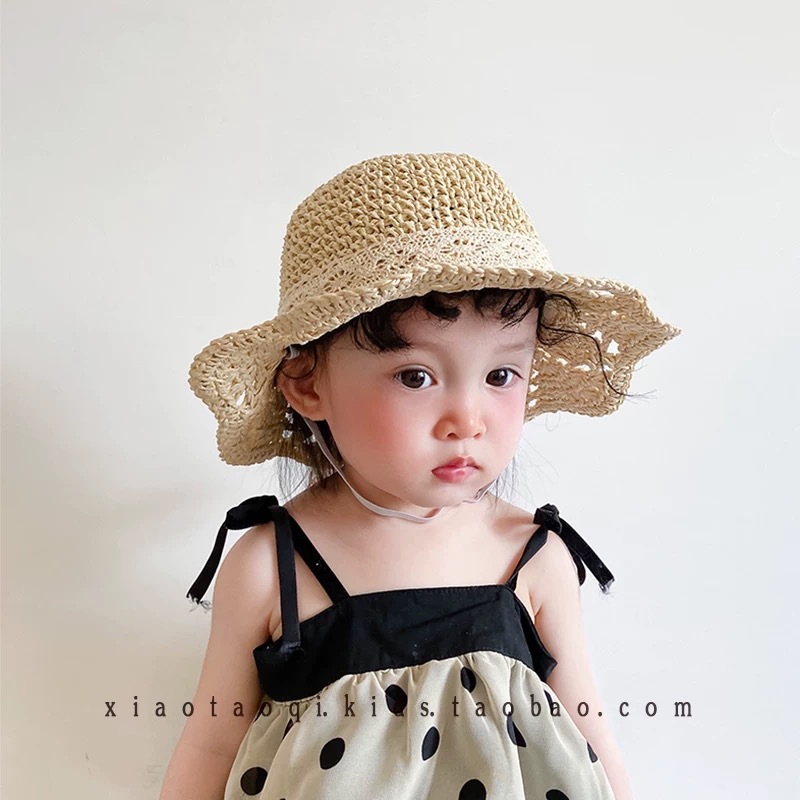 국경 간 ins 만화 모자 여름 어린이 해변 모자 태양 보호 모자 야외 밀짚 모자 만화 어린이 밀짚 모자스토어 가기