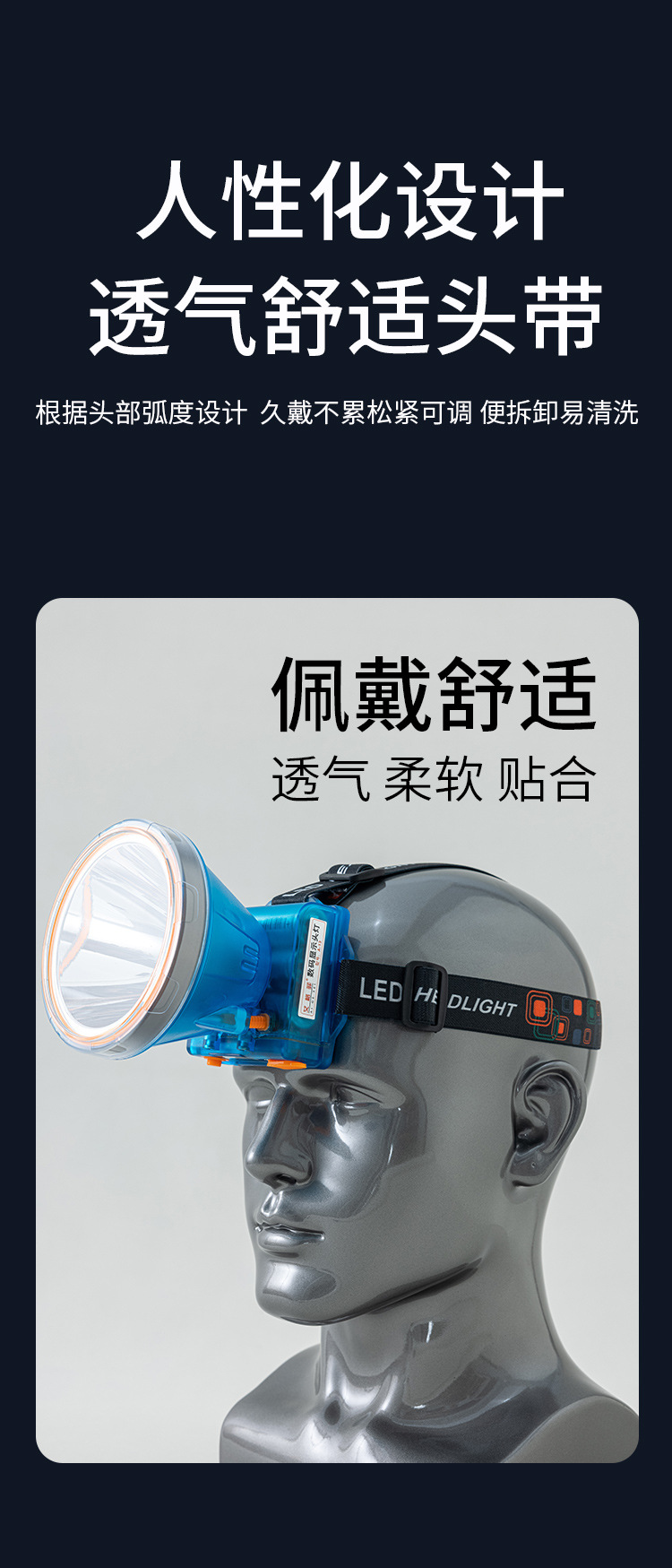 공장 스트레이트 헤어 Egfi 헤드 장착 큰 스팟 강한 빛 슈퍼 밝은 장거리 리튬 배터리 낚시 바다 방수 헤드 라이트