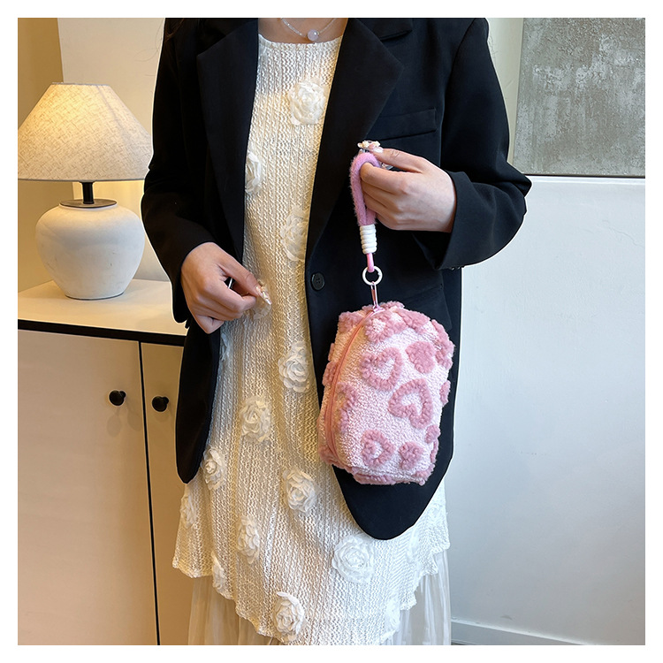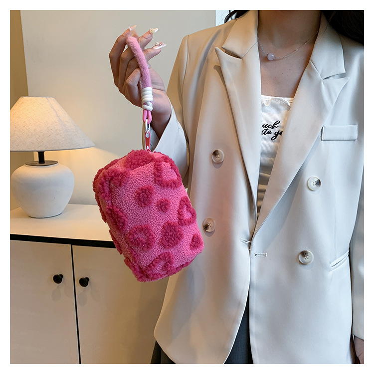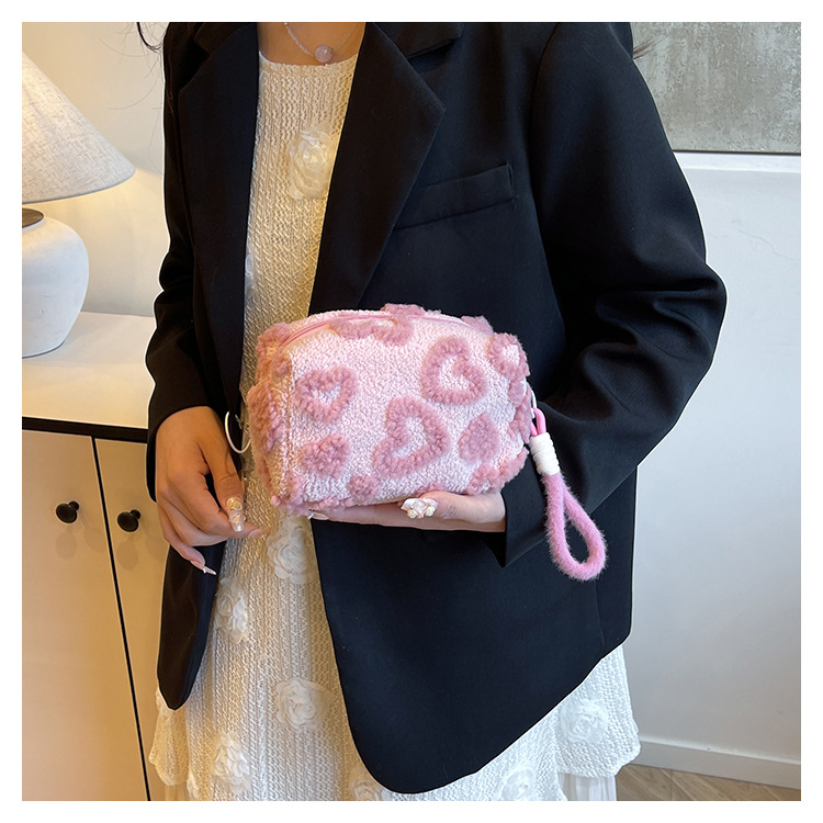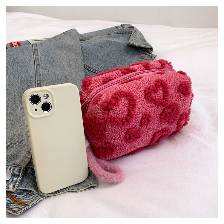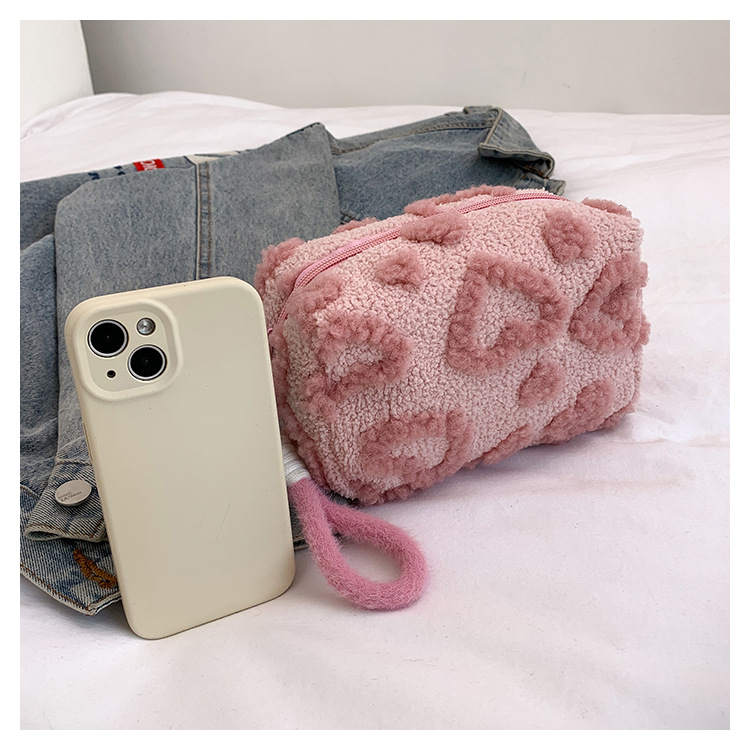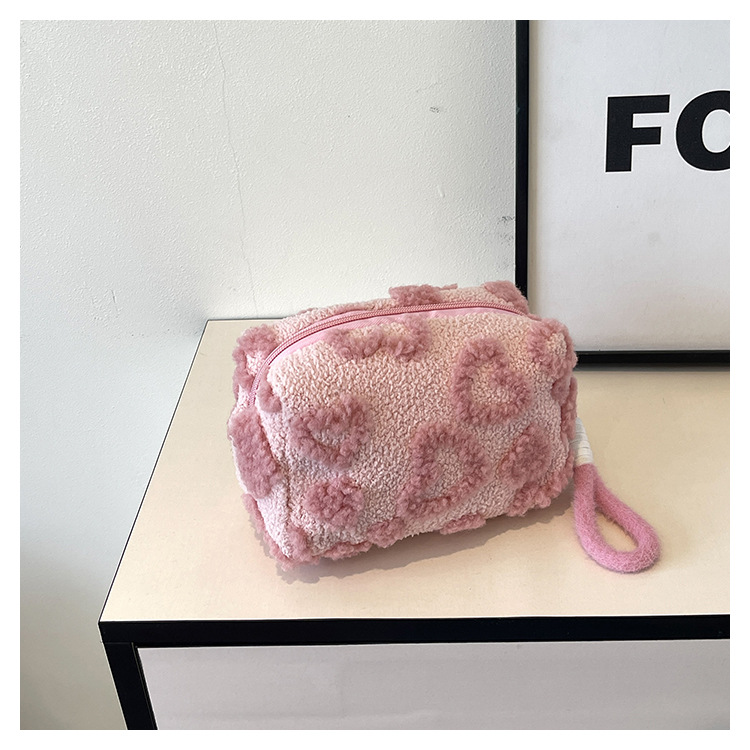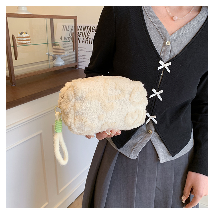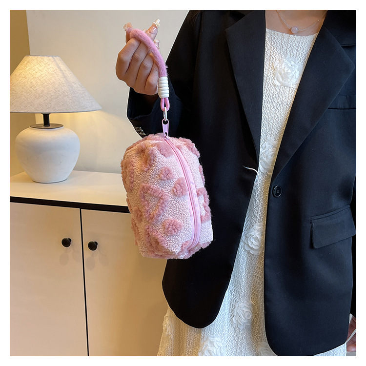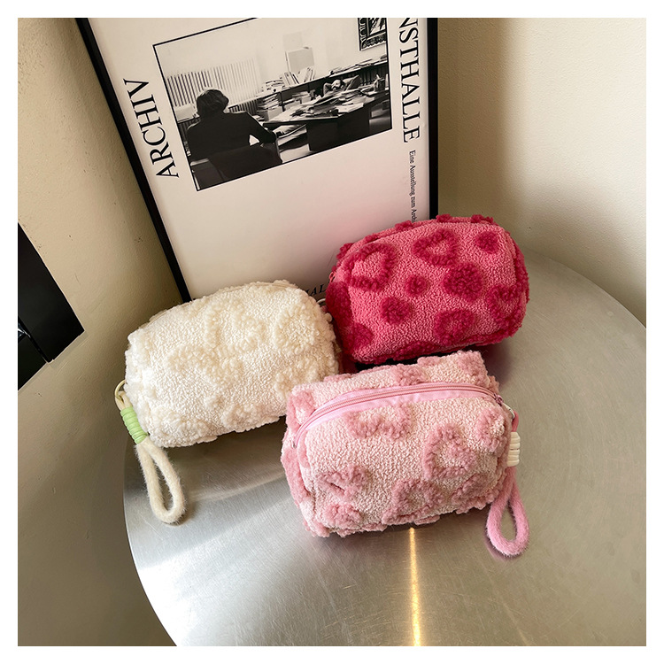 Ins 스타일 화장품 자카드 플러시 보관 가방 휴대용 귀여운 외국 스타일 보관 가방 외출 세면 용품 플러시 가방스토어 가기