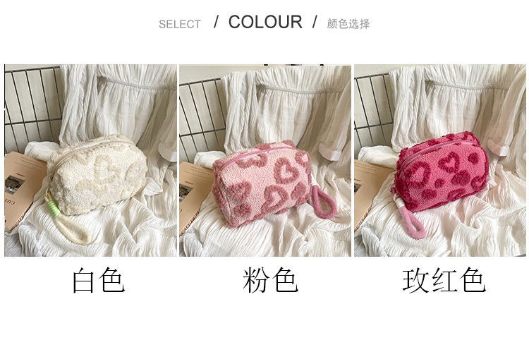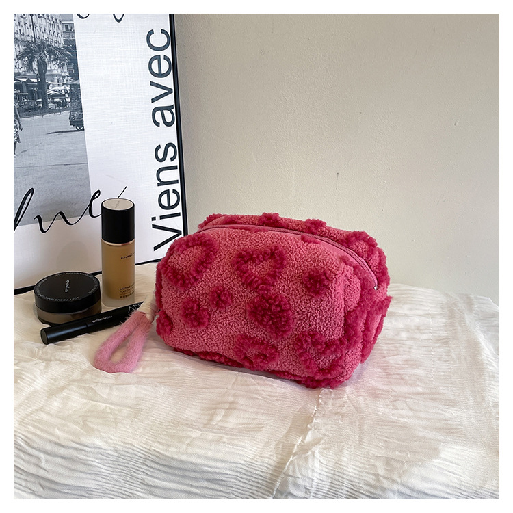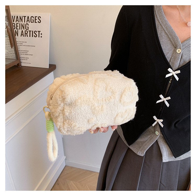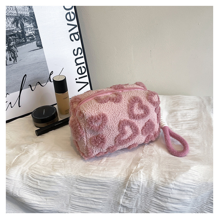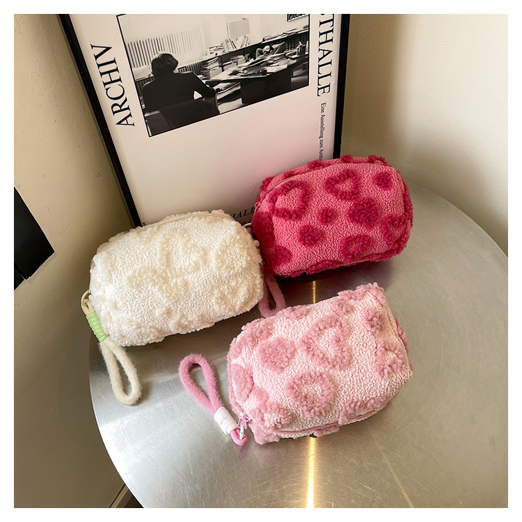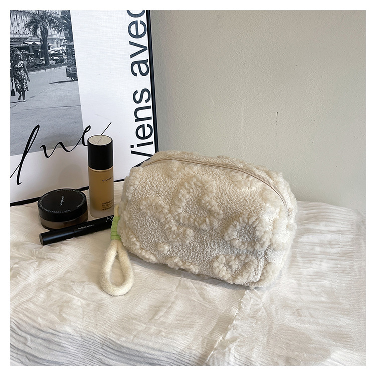Ins 스타일 화장품 자카드 플러시 보관 가방 휴대용 귀여운 외국 스타일 보관 가방 외출 세면 용품 플러시 가방