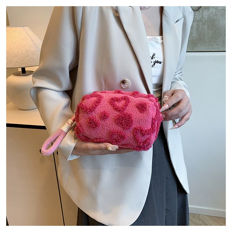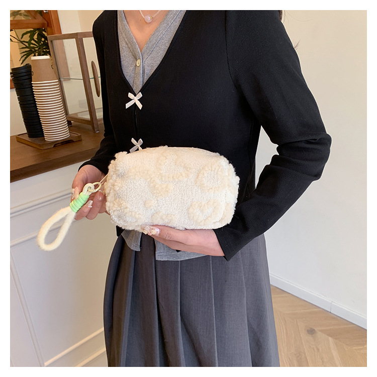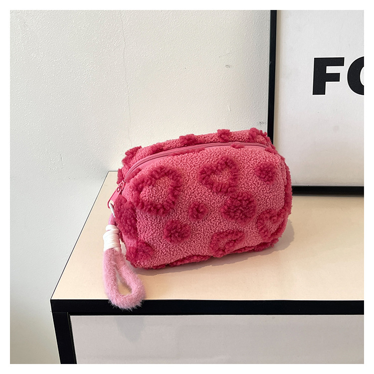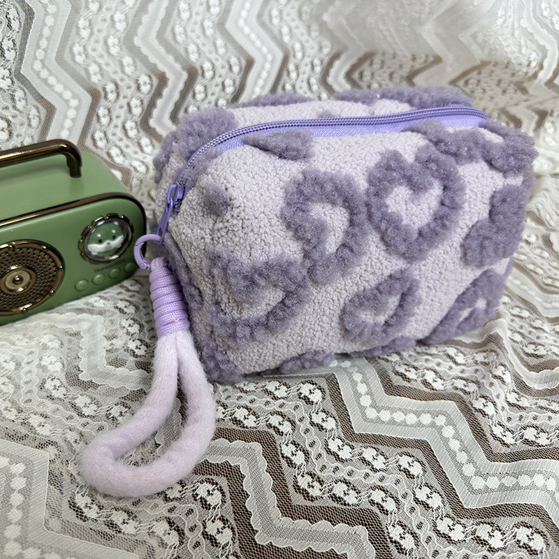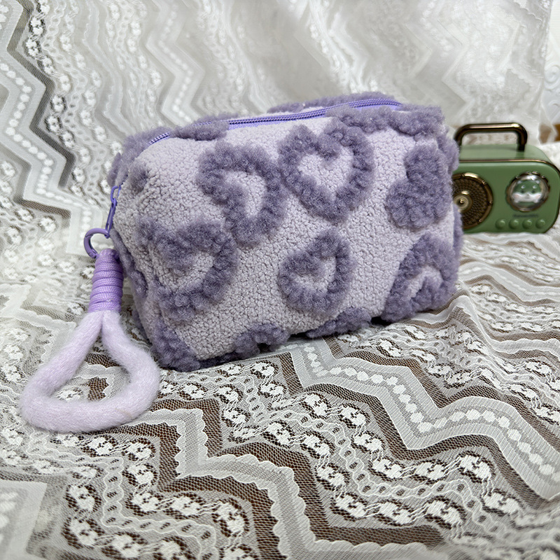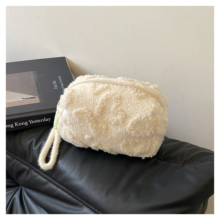 Ins 스타일 화장품 자카드 플러시 보관 가방 휴대용 귀여운 외국 스타일 보관 가방 외출 세면 용품 플러시 가방