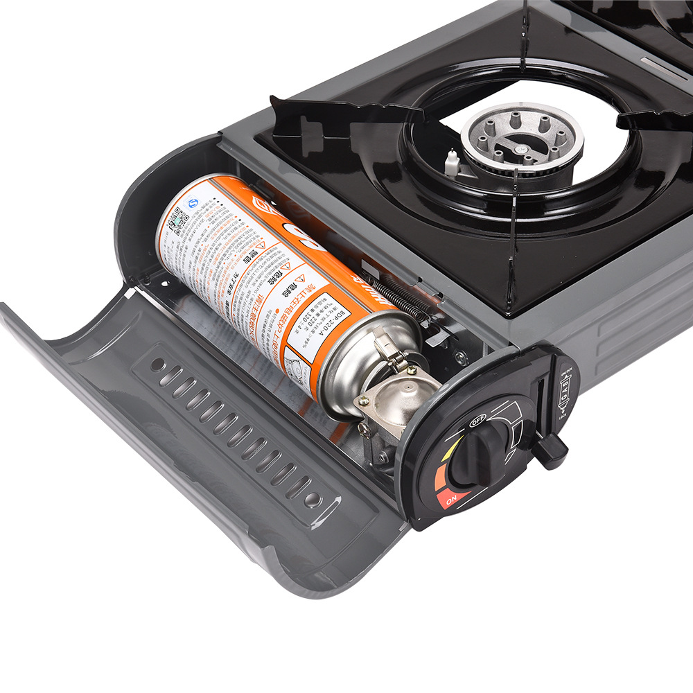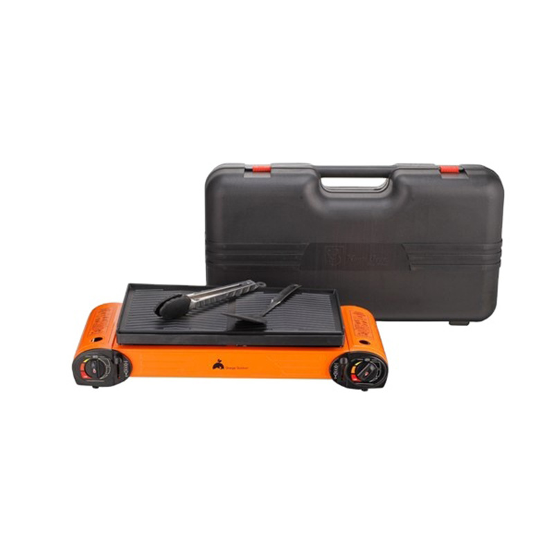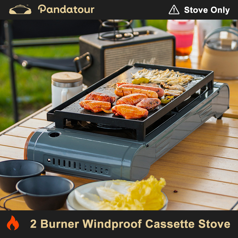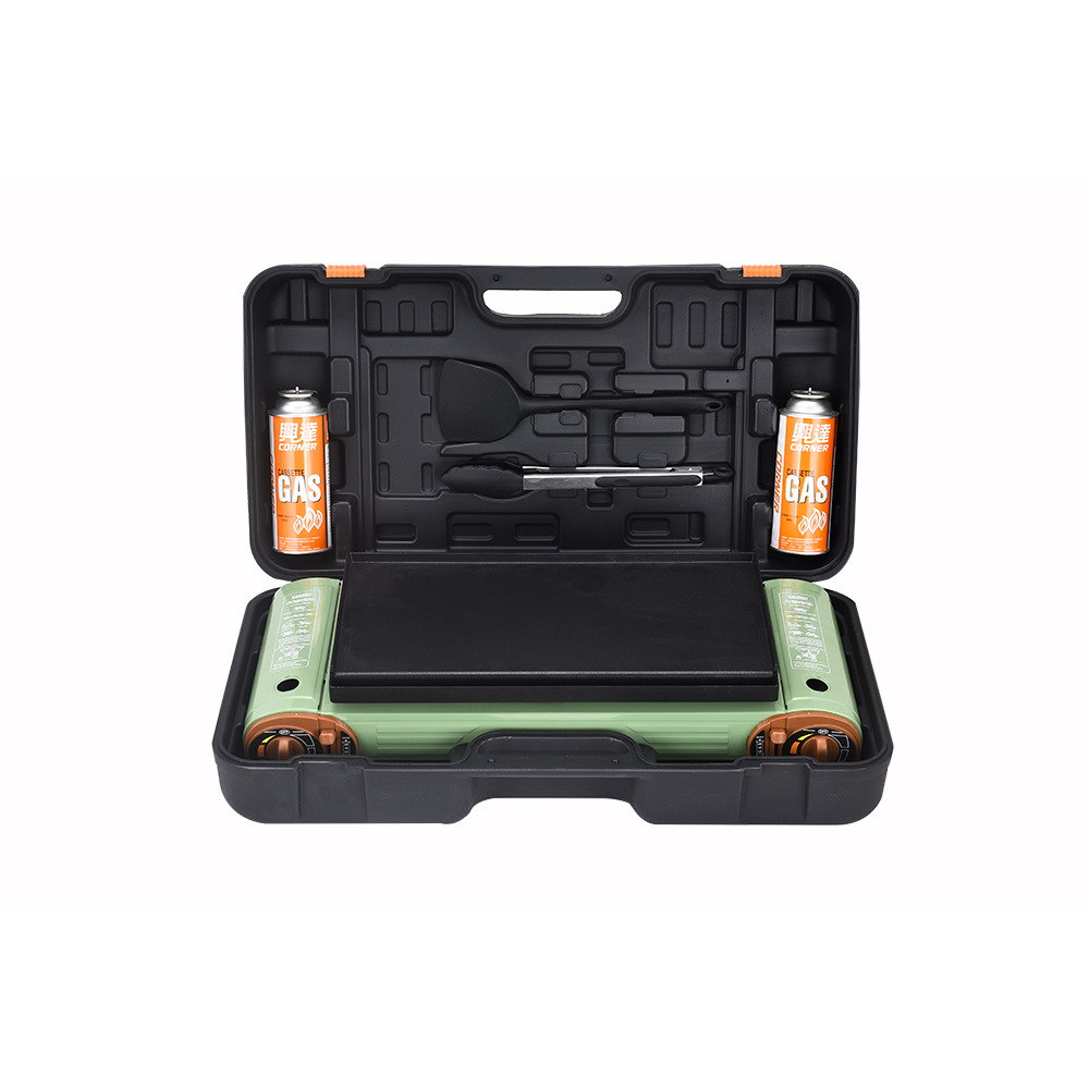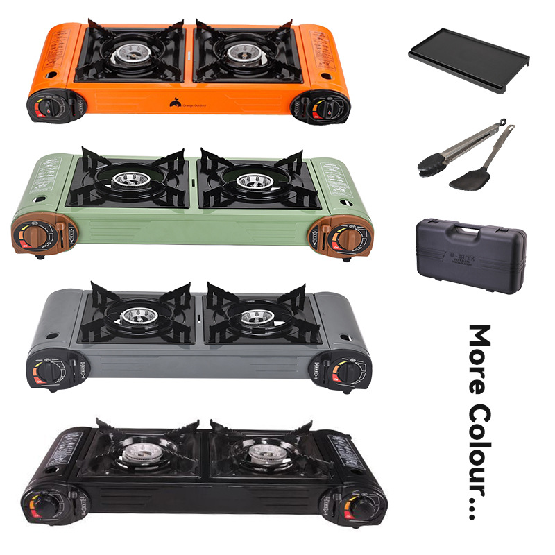 캠핑 카세트 스토브 세트, 야외 방풍 휴대용 베이킹 팬 도구 세트, 더블 헤드 더블 스토브, 국경 간 전용