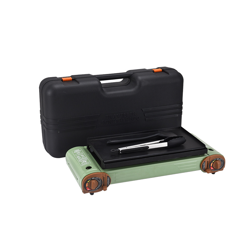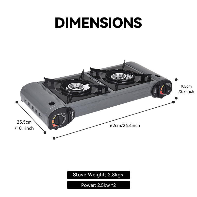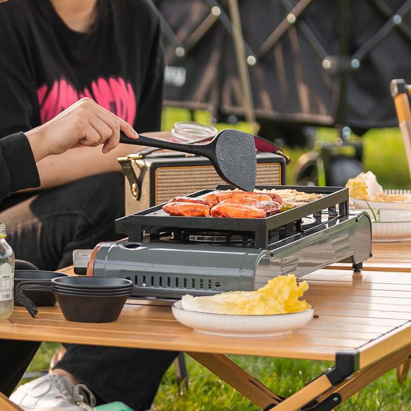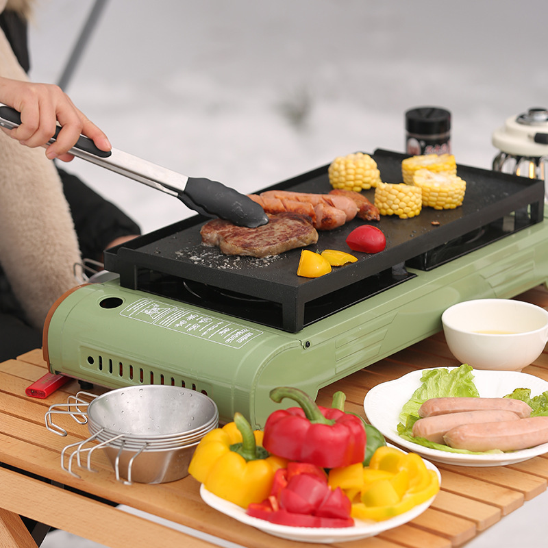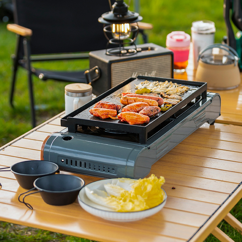 캠핑 카세트 스토브 세트, 야외 방풍 휴대용 베이킹 팬 도구 세트, 더블 헤드 더블 스토브, 국경 간 전용