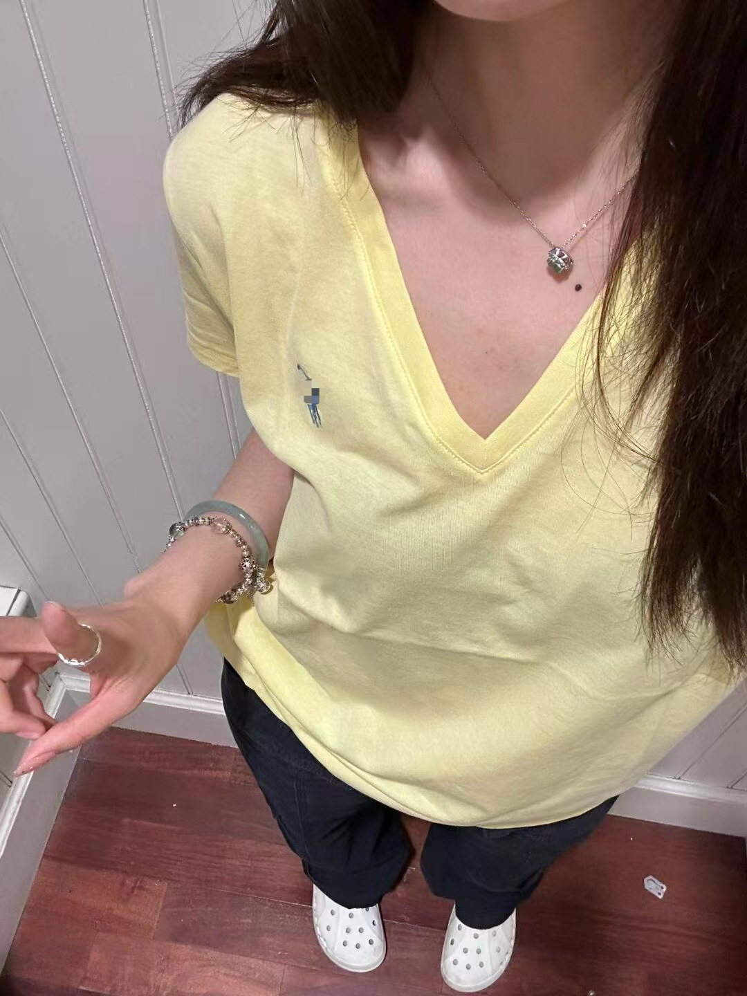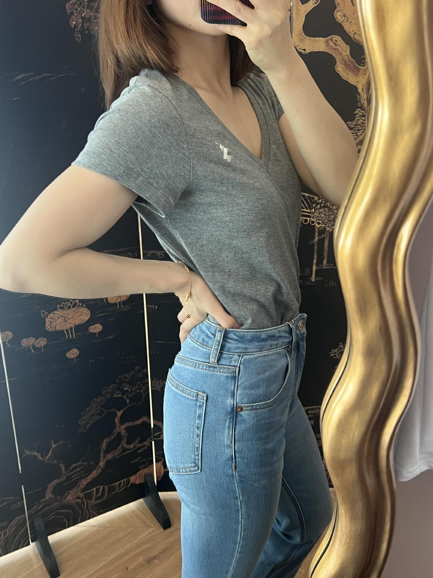 RL 러프 포니 자수 슬림 핏 탑베이스 셔츠 여름 퓨어 코튼 V-넥 솔리드 컬러 반팔 티셔츠 여성용 아메리칸 스타일스토어 가기