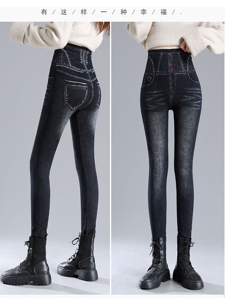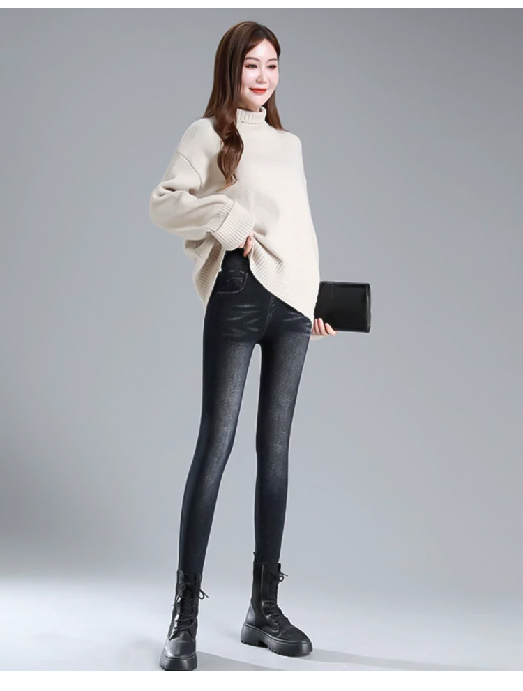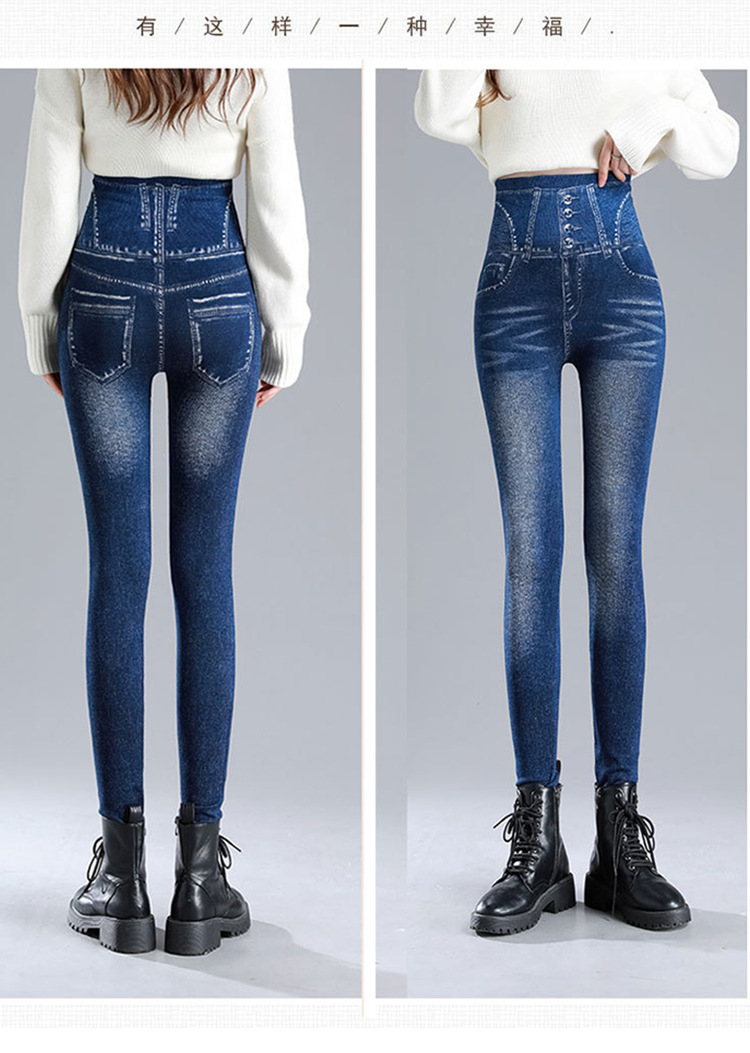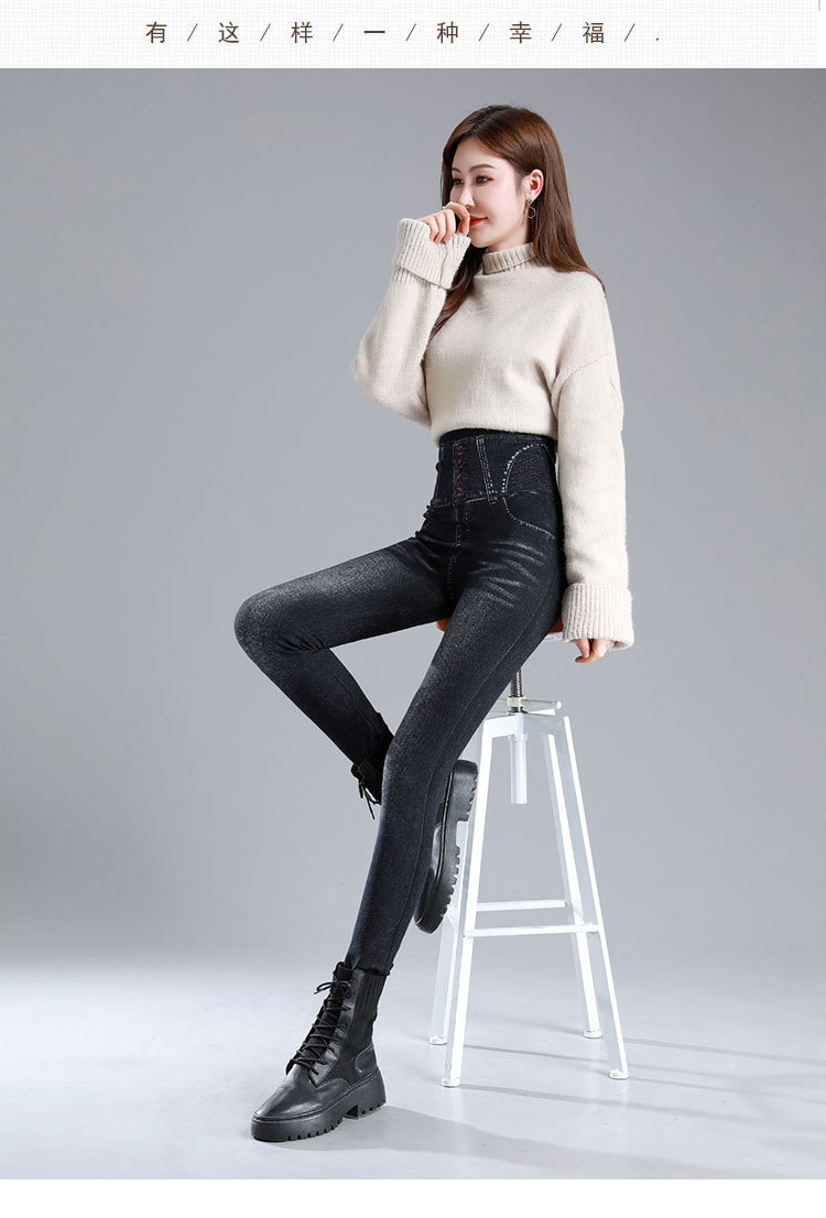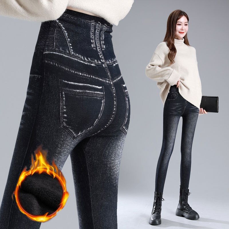여성용 와이드 웨이스트 모조 데님 레깅스, 하이웨이스트, 라지 사이즈, 신축성 있는 허리, 신축성 있는 레깅스, 가을 겨울 벨벳 레깅스스토어 가기