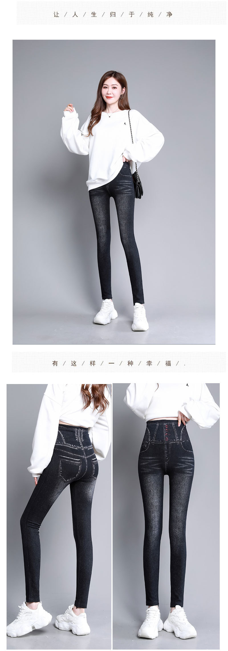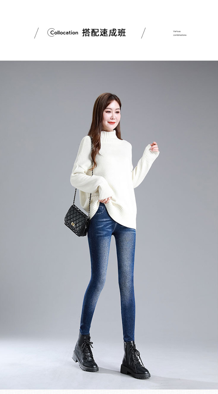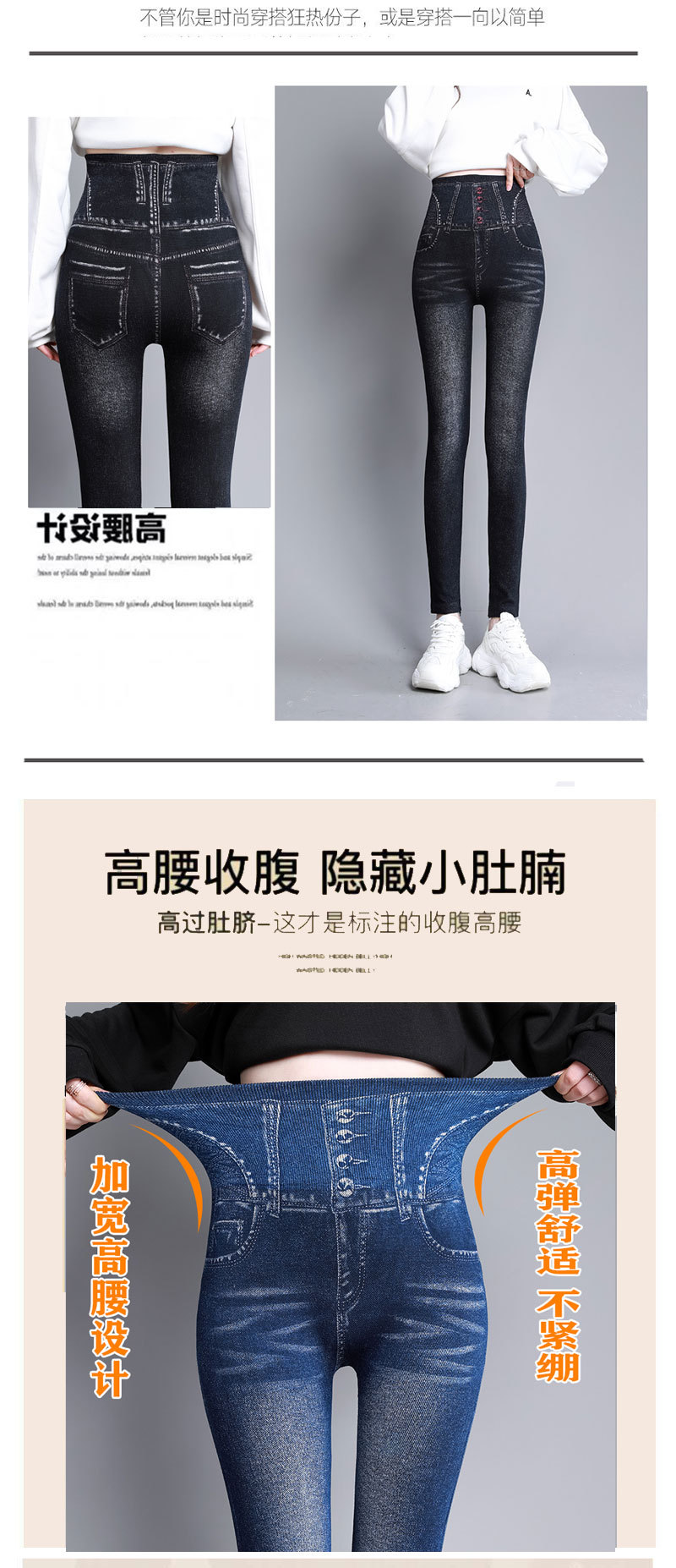 여성용 와이드 웨이스트 모조 데님 레깅스, 하이웨이스트, 라지 사이즈, 신축성 있는 허리, 신축성 있는 레깅스, 가을 겨울 벨벳 레깅스스토어 가기