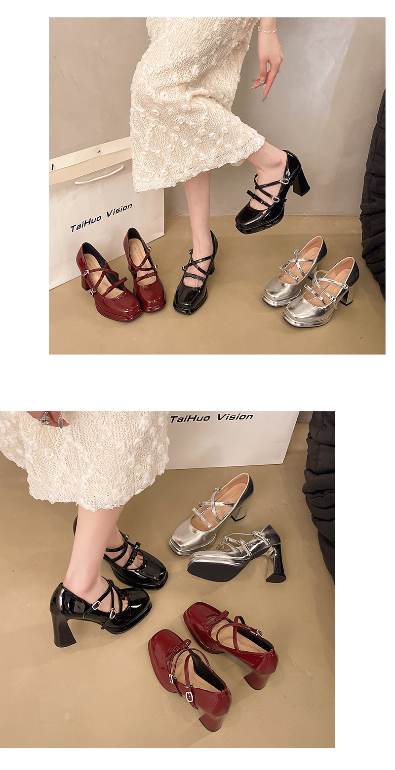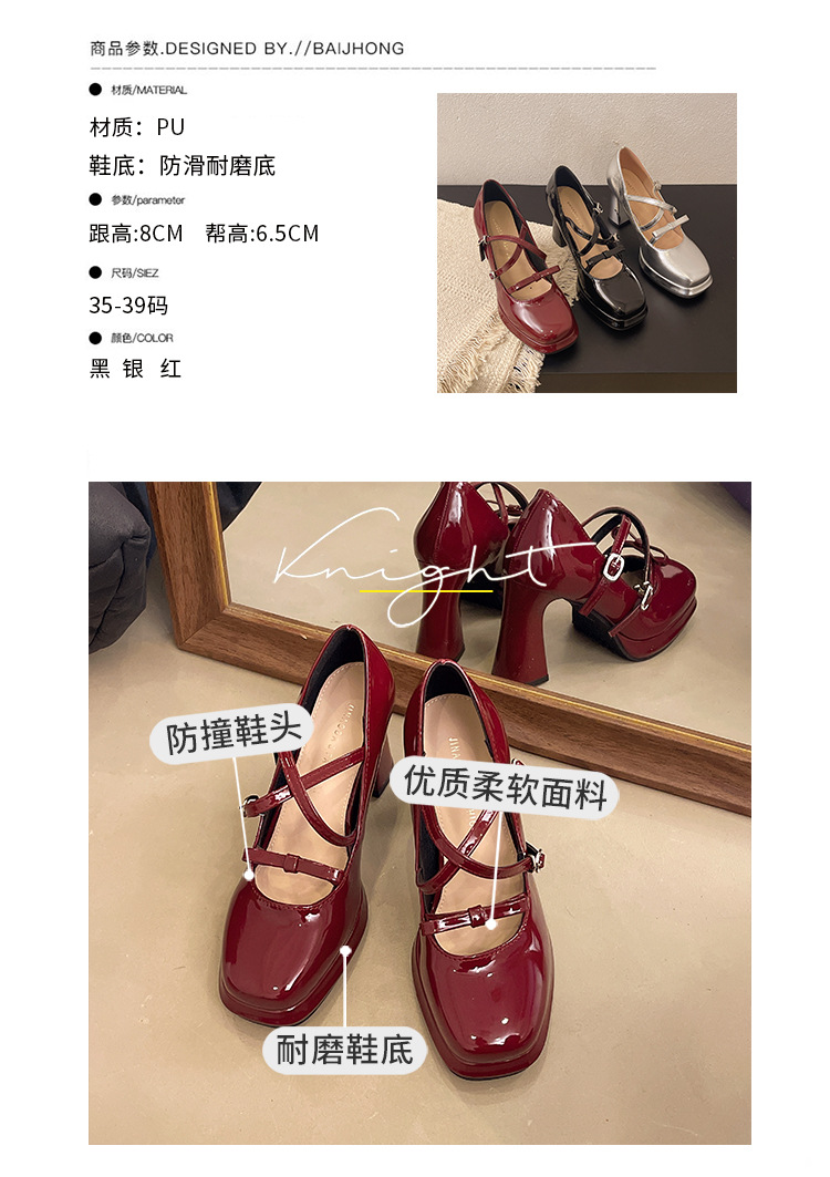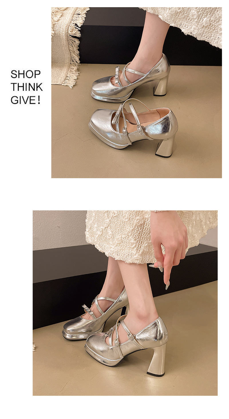 방수 플랫폼 하이힐 실버 메리 제인 신발 여성 싱글 레이어 신발 스퀘어 헤드 활 두꺼운 힐 슈퍼 하이힐 웨딩 신발스토어 가기