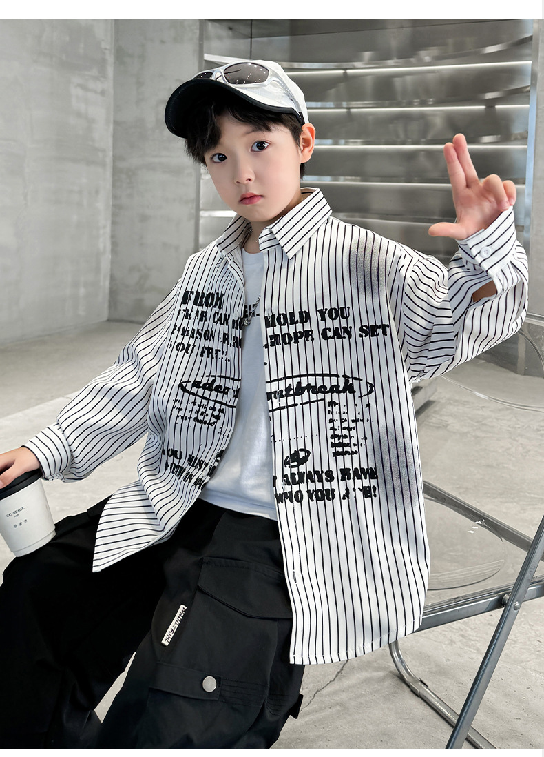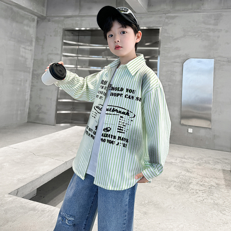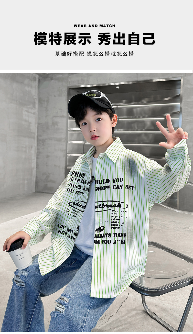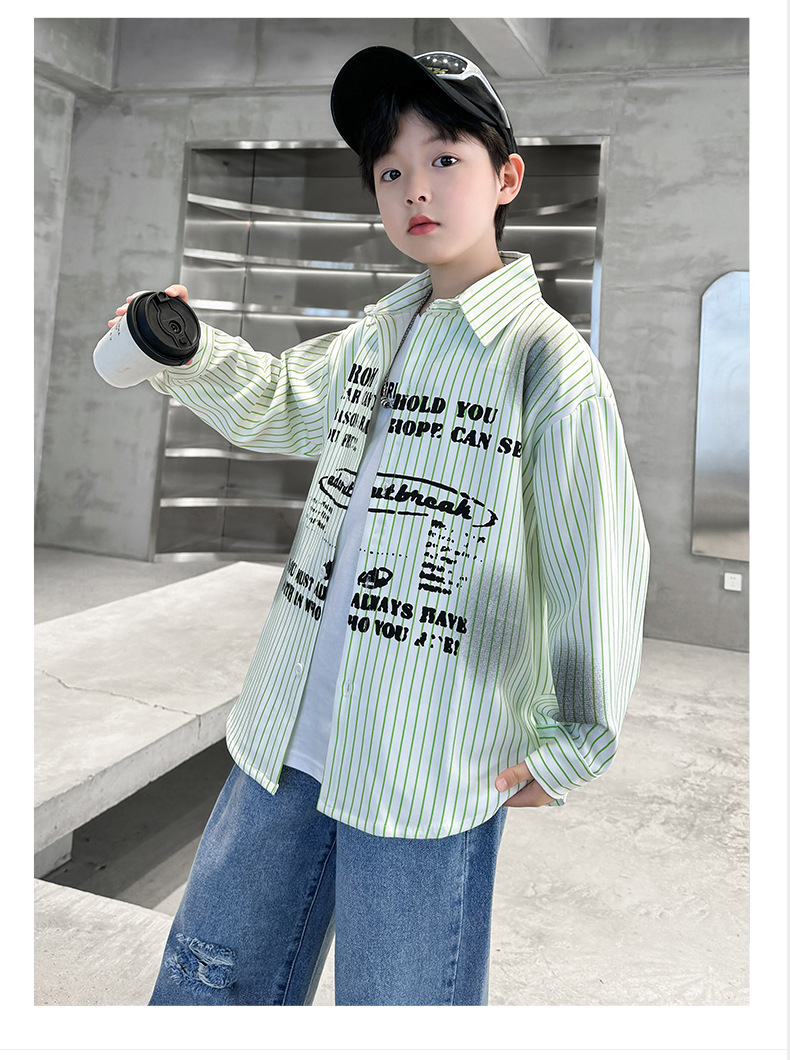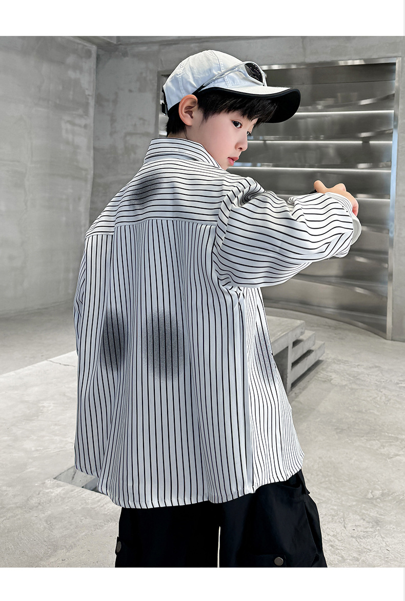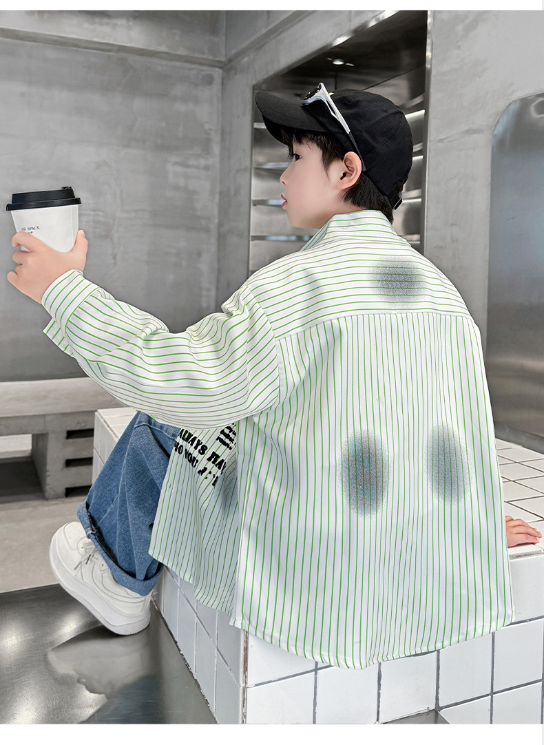 남아용 셔츠, 패셔너블하고 스타일리시한 봄옷, 2025년 신상 한국식 아동복, 스트라이프 셔츠, 재킷, 멋진 자외선 차단복스토어 가기