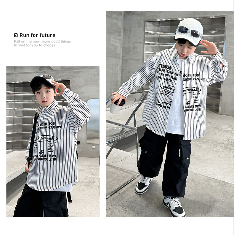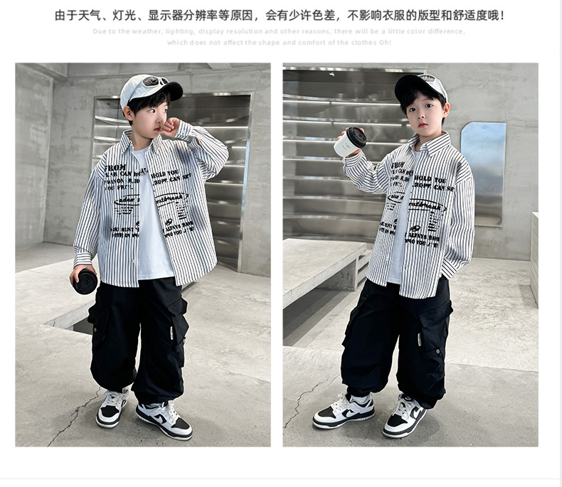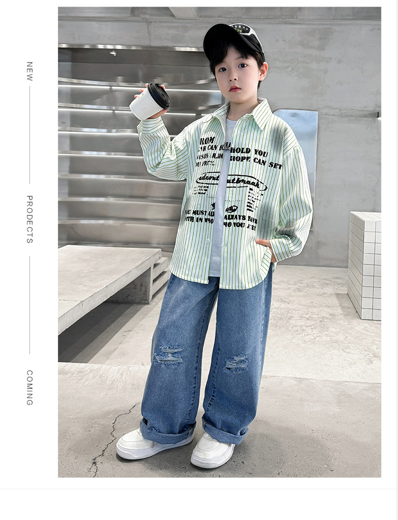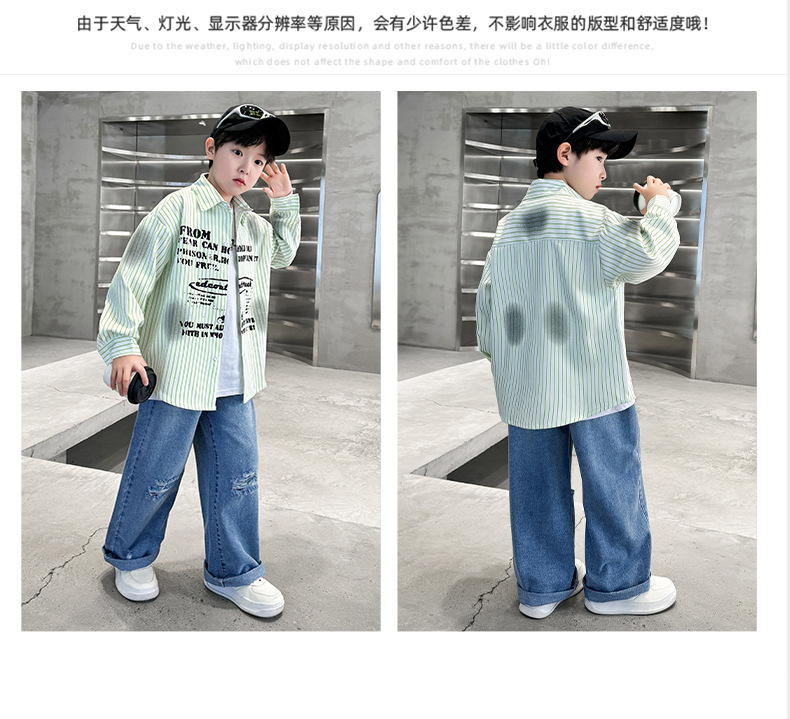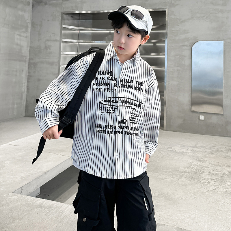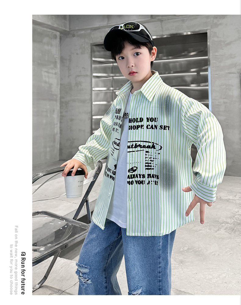 남아용 셔츠, 패셔너블하고 스타일리시한 봄옷, 2025년 신상 한국식 아동복, 스트라이프 셔츠, 재킷, 멋진 자외선 차단복스토어 가기