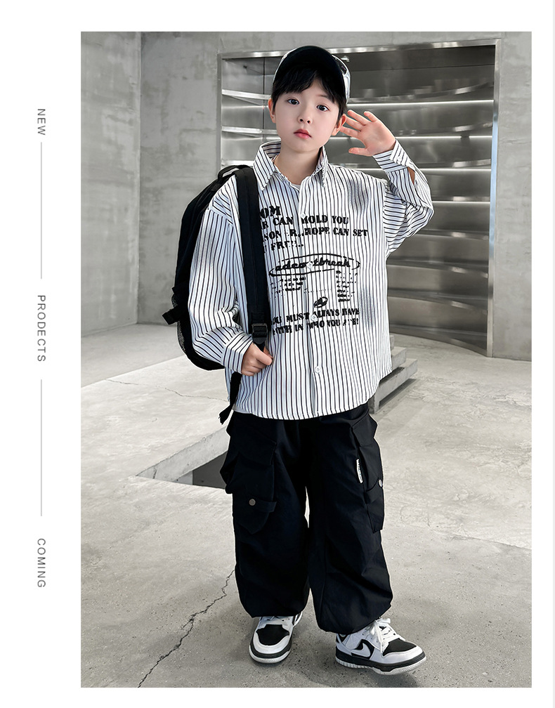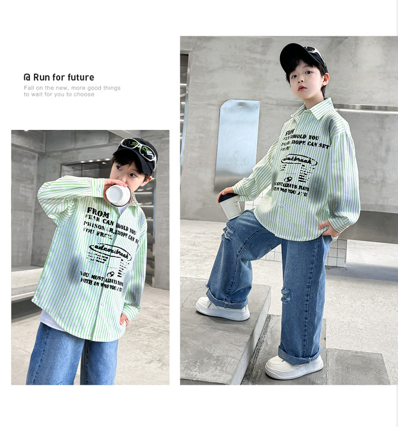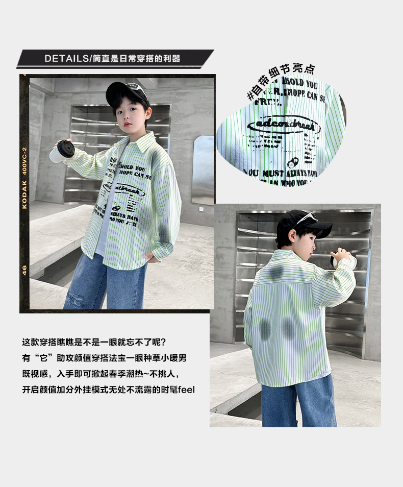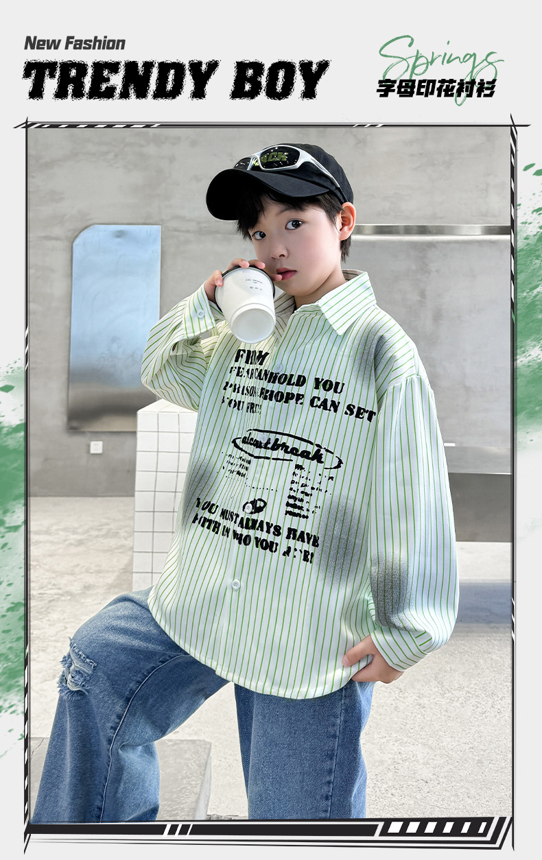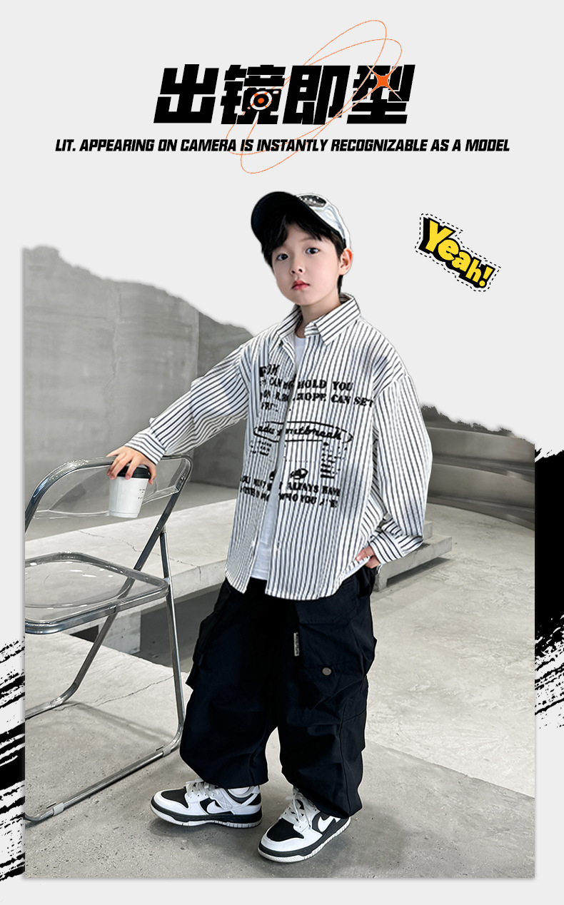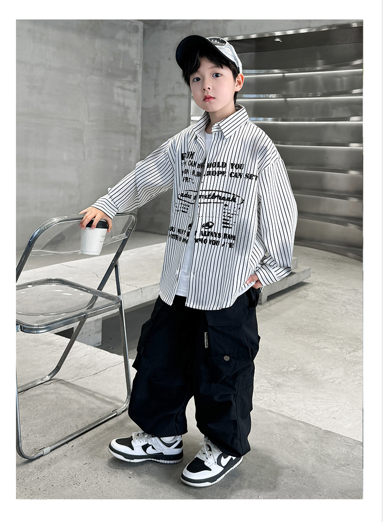 남아용 셔츠, 패셔너블하고 스타일리시한 봄옷, 2025년 신상 한국식 아동복, 스트라이프 셔츠, 재킷, 멋진 자외선 차단복스토어 가기