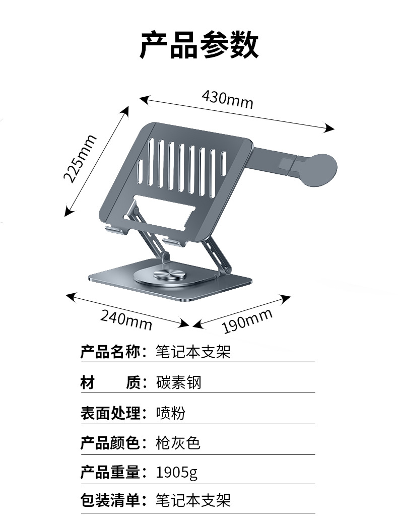 컴퓨터 스탠드 노트북 접이식 냉각 탄소강 스탠드 휴대용 스토리지 리프팅 회전 노트북 스탠드