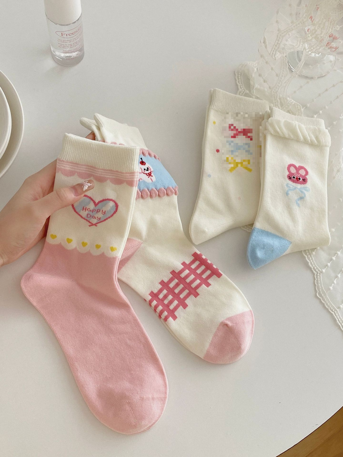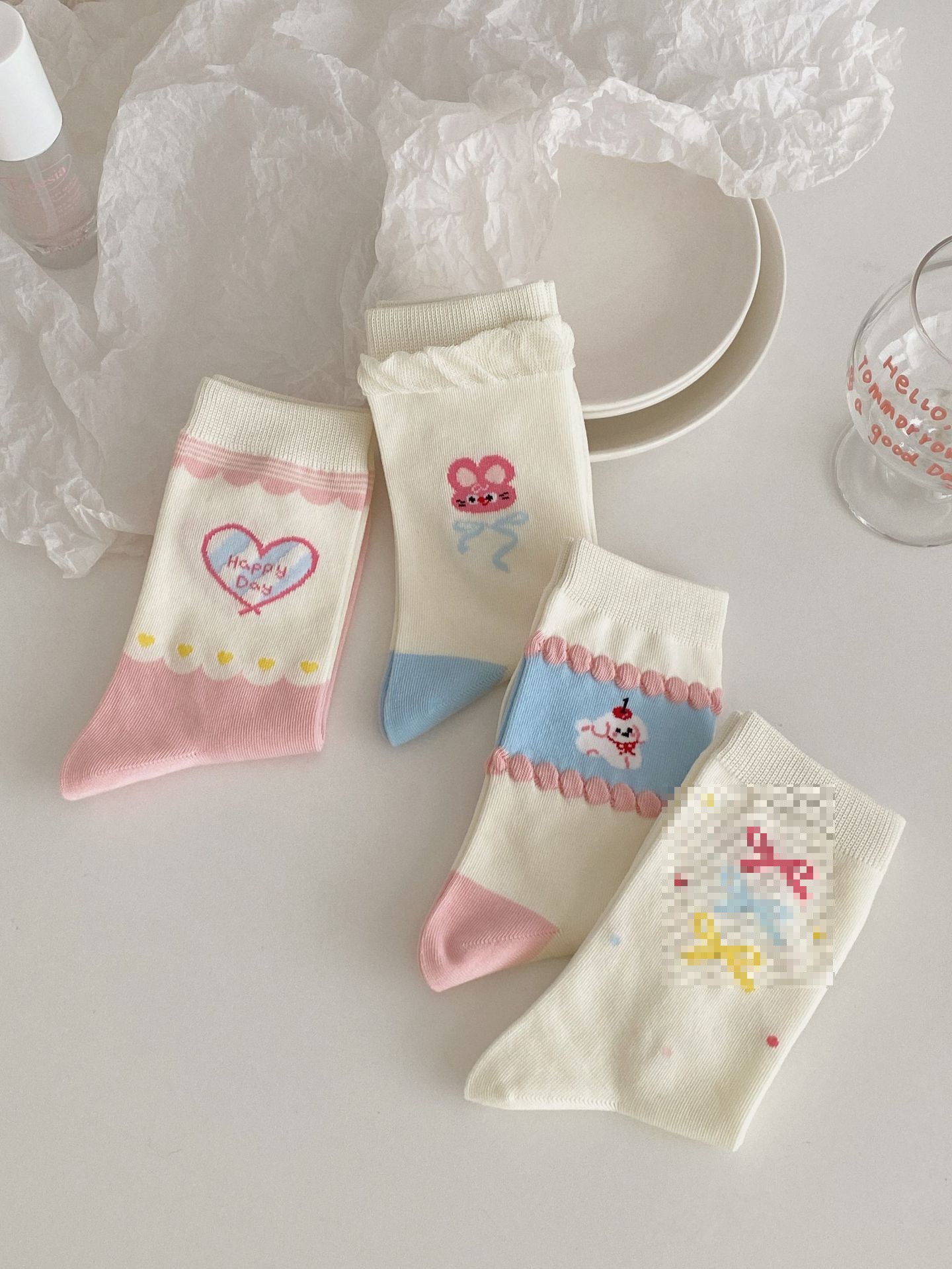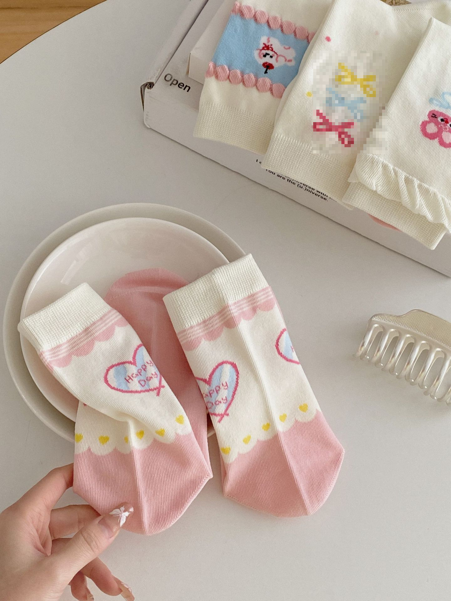 핑크 Bowknot 양말 여성용 뼈없는 미드 튜브 양말 Ins 유행 일본 스타일 귀여운 강아지 학생 사랑 소녀 양말